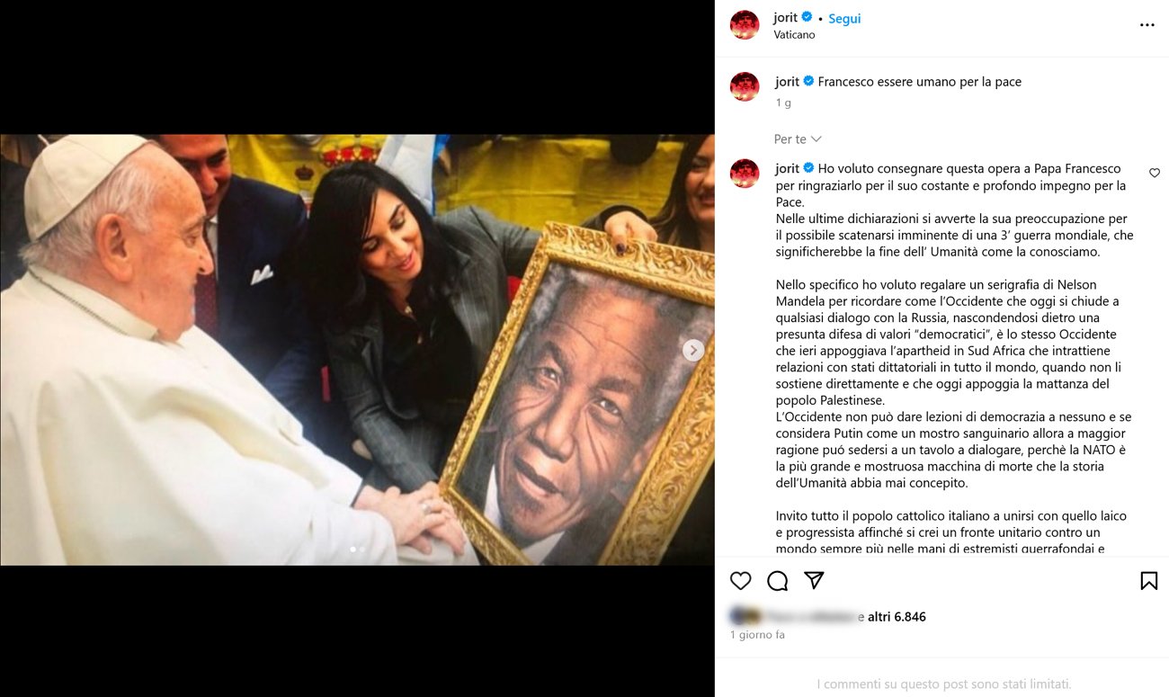 Il 15 gennaio 2024 è stato pubblicato un post su Facebook in cui si afferma che Papa Francesco avrebbe autorizzato il World Economic Forum (WEF) «a riscrivere la Santa Bibbia “verificata in base ai fatti”». Sempre nel post si legge che «un insider del WEF» avrebbe infatti rivelato che il pontefice vorrebbe «che la nuova versione “verificata dei fatti” della Bibbia sia molto più politica, con un posto centrale per il Forum economico mondiale e con un maggiore spazio per la supremazia della natura e molto meno di Dio».