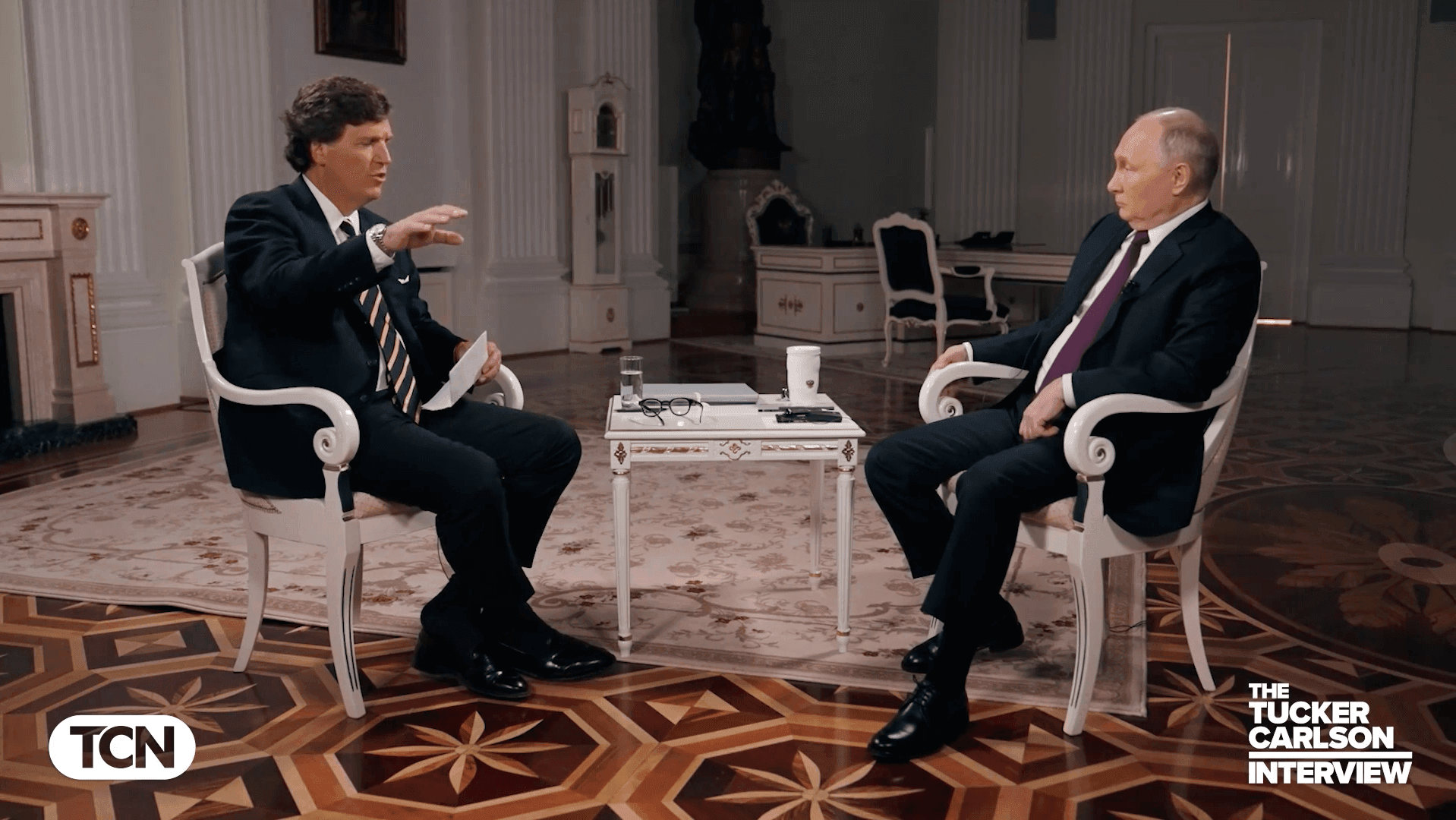 Secondo questa trascrizione, Putin, rispondendo a Carlson che chiedeva cosa direbbe alle persone che governano gli Stati Uniti, avrebbe dichiarato «che la Russia non è vostra nemica. Non vogliamo la guerra. Siamo pronti per la pace». Su Biden il presidente russo avrebbe invece affermato che la Russia è convinta «che non sia lui a governare il Paese. Diciamo che abbiamo buone fonti che lo confermano, ma è sotto gli occhi di chiunque». Alla domanda «Come ti sentiresti se Trump vincesse di nuovo?», Putin avrebbe poi dichiarato «avevamo buoni rapporti quando Trump era presidente. Non c’era guerra. I nostri rapporti erano al culmine. Detto questo, nulla è prevedibile o rimane uguale. Dovremo vedere». Riguardo al presidente ucraino Volodymyr Zelensky, il presidente russo avrebbe commentato con queste parole: «Ricordo che ridevo alle sue battute quando era un comico. Torniamo alle risate».