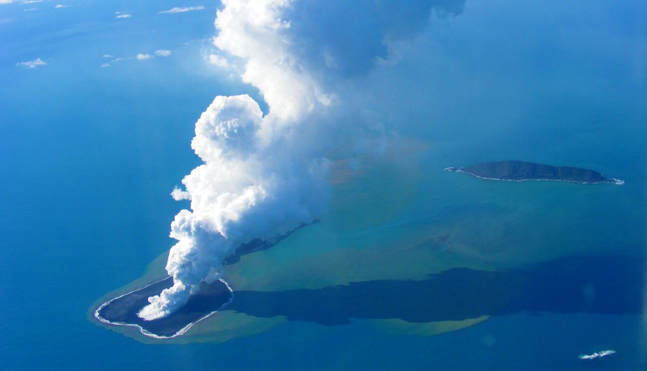 Il 15 gennaio 2022, al culmine di un’attività iniziata un mese prima, il vulcano Hunga Tonga–Hunga Haʻapai è esploso generando un boom sonico che è stato avvertito a migliaia di chilometri di distanza, un’onda di pressione che ha fatto il giro del pianeta e uno tsunami che ha attraversato l’intero Oceano Pacifico. Dal vulcano è fuoriuscito un pennacchio che ha raggiunto un’altezza di più di 50 chilometri, superando la stratosfera.