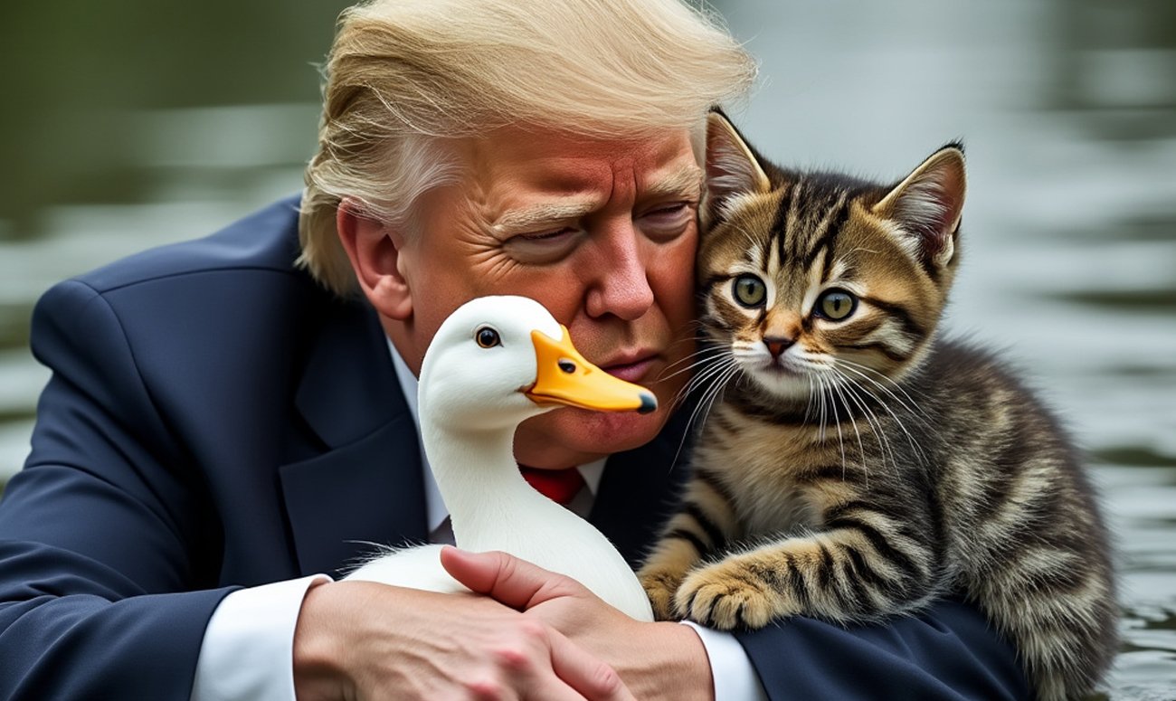 Su X, in particolare, sono diventate virali una serie di immagini generate con l’intelligenza artificiale in cui Trump protegge gattini e anatre da orde minacciose di persone nere che rincorrono gli animali. In un video, sempre prodotto con l’IA, si vede Trump che bacia un’anatra con la didascalia: «Ti amo e non permetterò agli haitiani di mangiarti».
