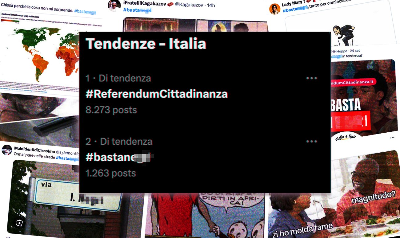 Tuttavia, il referendum non regalerebbe automaticamente la cittadinanza – e di sicuro non la regalerebbe ai «criminali». Sempre sul sito, il comitato promotore ricorda che «la concessione della cittadinanza non è un automatismo» e che restano invariati gli attuali requisiti, quali «la conoscenza della lingua italiana, il possesso negli ultimi anni di un consistente reddito, l’incensuratezza penale, l’ottemperanza agli obblighi tributari, l’assenza di cause ostative collegate alla sicurezza della Repubblica». Nonostante le palesi falsità e l’evidente essenza razzista dell’hashtag, a partire dall’uso della n-word, la piattaforma non ha preso alcun provvedimento; anzi, è rimasto saldamente tra le tendenze per più 48 ore. Ma del resto, X ormai è a tutti gli effetti il megafono dell’estrema destra globale – così come lo è il suo proprietario Elon Musk.