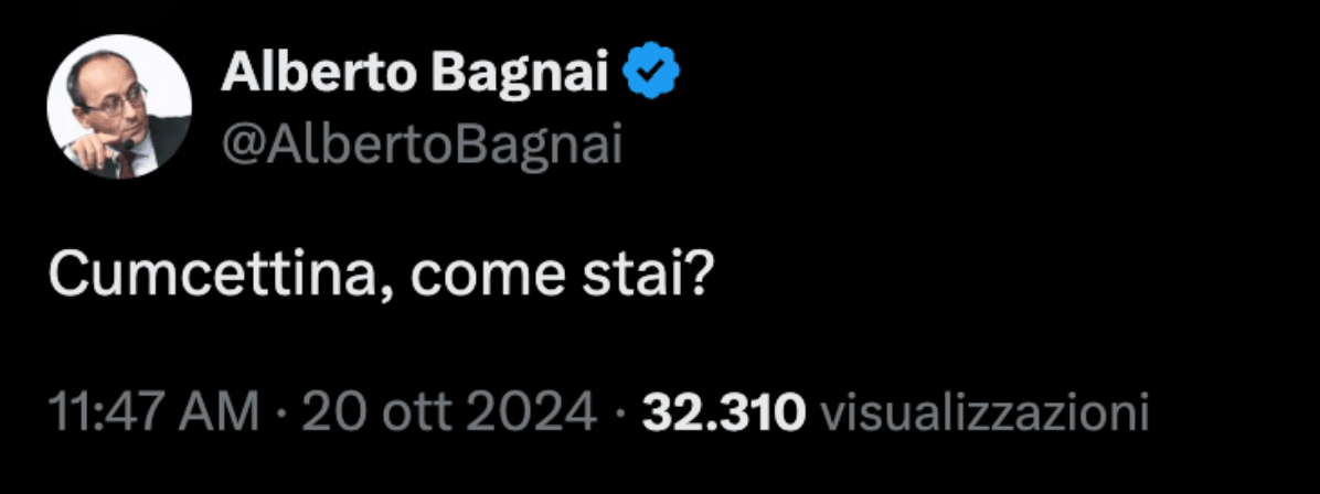 Quando il 20 ottobre scorso il deputato leghista Alberto Bagnai ha pubblicato su X la frase «Cumcettina, come stai?» per rivolgersi a una sua follower, la maggior parte degli utenti della piattaforma avrà pensato a un affettuoso scambio di cordialità tra conoscenti. Bagnai stava invece attingendo da una terminologia nata negli ambienti più misogini dell’internet italiano, partorita da una comunità cresciuta ai margini di un’ideologia estremista che negli anni è stata collegata a crimini d’odio e attacchi terroristici.