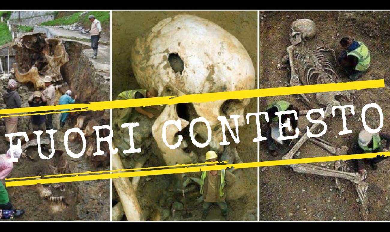Il 14 giugno 2020 su Facebook sono state pubblicate tre foto che mostrano tre scheletri. Le immagini sono accompagnate da questo commento, scritto da chi ha pubblicato il contenuto su Facebook: «Foto di scheletri di umana specie gigante».