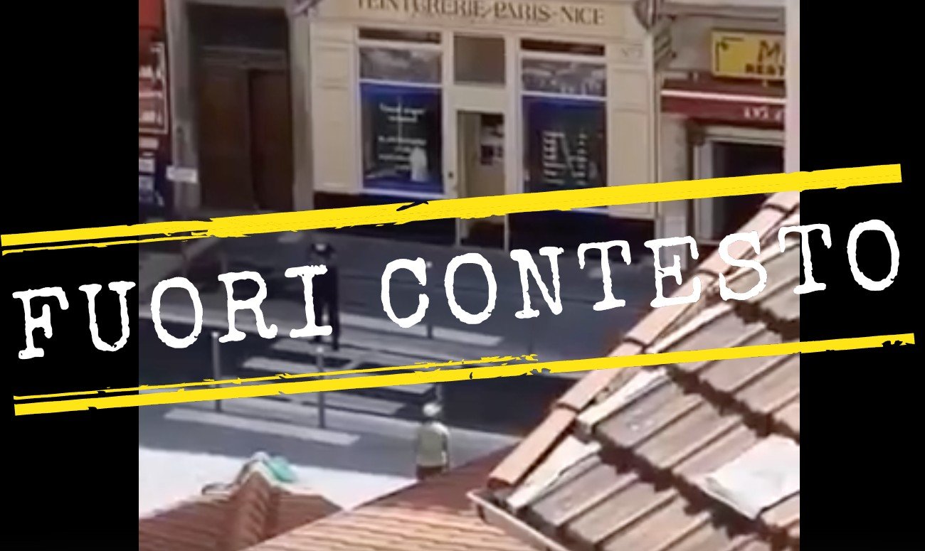 Il 29 ottobre 2020 su Facebook è stato pubblicato un video che mostra una persona per strada con un pistola in mano mentre viene bloccata da due agenti di polizia. Le immagini sono accompagnate da questo commento, scritto da chi ha pubblicato il post: «Attentato di #Nizza, in esclusiva per voi il momento dell’arresto dell’attentatore».
