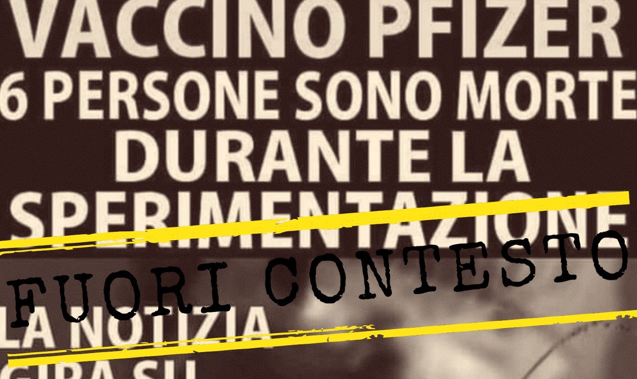 Il 14 dicembre 2020 su Facebook è stata pubblicata un’immagine che riporta questo testo: «Vaccino Pfizer 6 persone sono morte durante la sperimentazione. La notizia gira su molte testate internazionali tranne quelle italiane». Il riferimento è alla Pfizer, azienda farmaceutica che, insieme alla BioNTech, ha lavorato ad un vaccino contro il nuovo coronavirus.