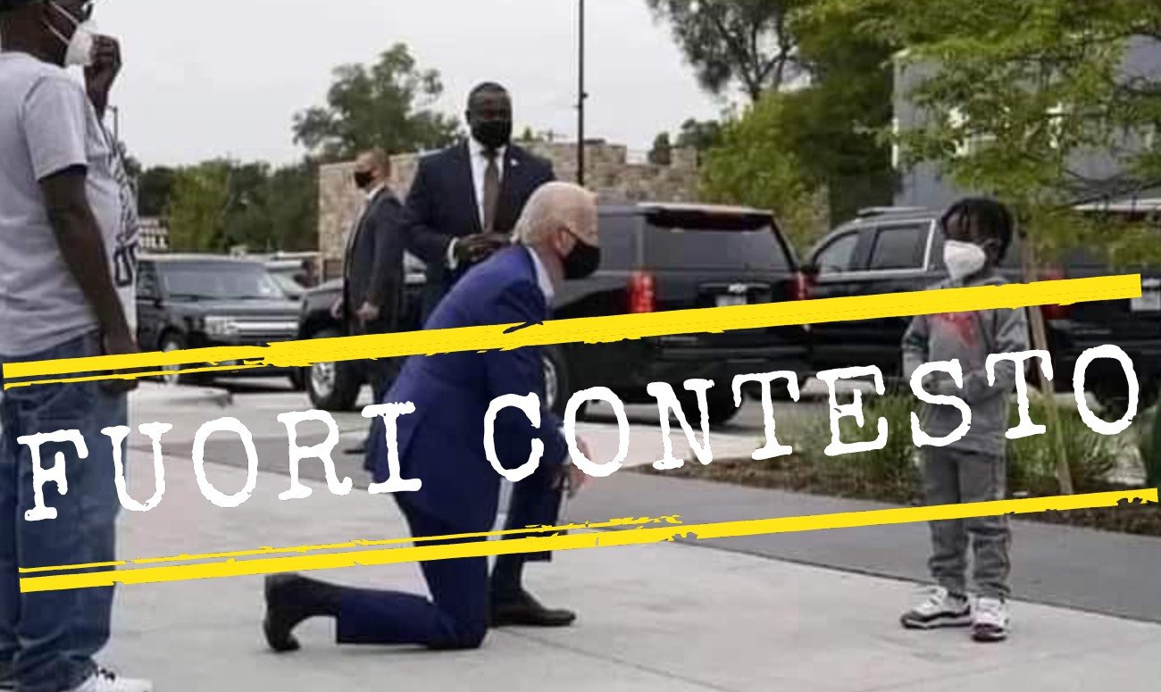 Il 17 aprile 2021 su Facebook è stata pubblicata una foto che mostra il presidente degli Stati Uniti d’America Joe Biden inginocchiarsi a terra davanti un bambino. L’immagine è accompagnata da questo testo, scritto da chi ha pubblicato la foto su Facebook: «Il presidente degli Stati Uniti “Joe Biden” in ginocchio davanti alla bambina “Gina”, la figlia di “George Floyd”, chiedendole scusa a nome del popolo americano per l’uccisione del padre per mano di alcuni poliziotti razzisti americani». Il riferimento è all’afroamericano deceduto il 25 maggio 2020 durante un violento arresto da parte di alcuni agenti della polizia di Minneapolis (Minnesota, Stati Uniti d’America). Il 20 aprile 2021 l’ex agente di polizia Derek Chauvin è stato condannato per omicidio involontario di secondo grado, omicidio di terzo grado e omicidio colposo.