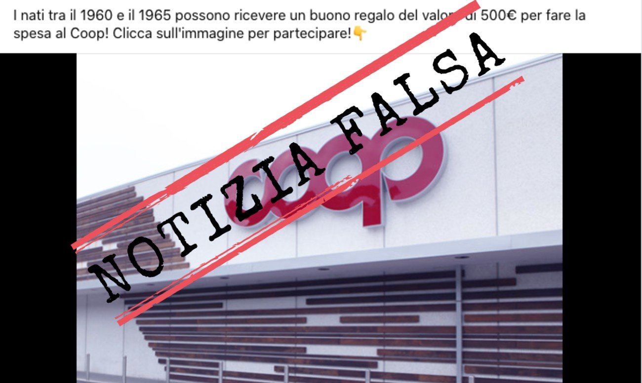 Il messaggio è corredato da un link che indirizza al sito coop.it-scegliere.club e promette di inviare i buoni spesa entro due giorni. Trattandosi di una notizia falsa, invitiamo i nostri lettori a non cliccarci sopra.