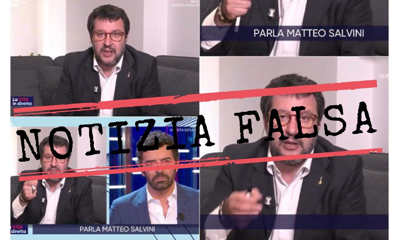 La seconda parte della dichiarazione attribuita all’ex ministro dell’Interno – «Tutta l’Italia è con me e con il potere di Maria riusciremo a dipanare le nuvole oscure che offuscano il nostro fulgido futuro» – non è stata mai pronunciata da Salvini durante la trasmissione. Si tratta infatti di una frase rilanciata in realtà da un profilo parodia di Salvini (@natteosalvinimi) nella cui bio si legge «Questo è un profilo satira! Non l’originale! Quel che scrivo non lo dice il vero Matteo Salvini!».