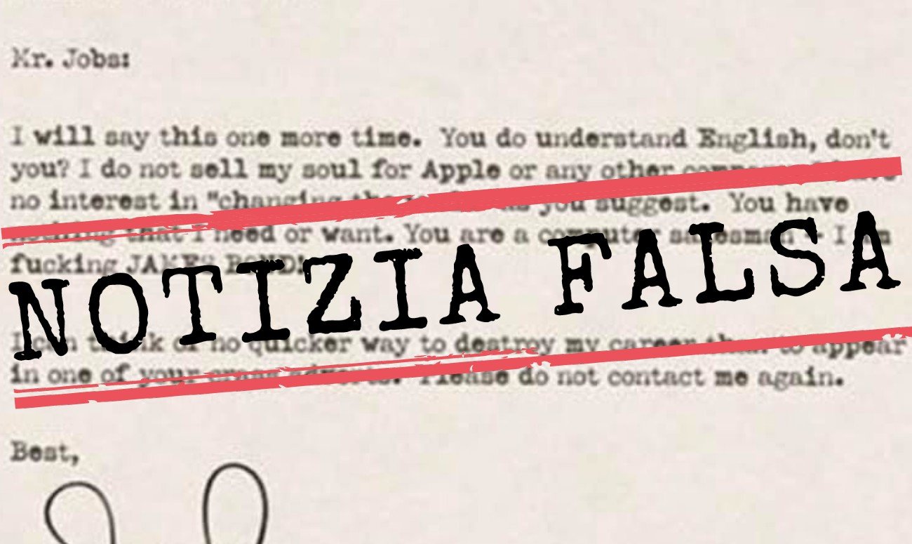 Il 17 giugno su Facebook è stato pubblicato un post in cui si legge che Steve Jobs, cofondatore di Apple, avrebbe scritto queste parole prima di morire a causa di un tumore il 5 ottobre 2011: «Agli occhi degli altri la mia vita è l’essenza del successo ma a parte il lavoro ,ho provato poca gioia. Alla fine la mia ricchezza è soltanto una parte della mia vita a cui mi sono abituato. In questo preciso momento malato e sul letto vicino alla morte capisco che tutta la mia ricchezza è insignificante. Puoi assumere qualcuno per guidarti l’auto, puoi assumere gente che ti faccia guadagnare più soldi ma non puoi assumere qualcuno a cui dare la tua malattia. Possiamo avere tante cose ma non possiamo avere una cosa, la VITA quando stai per perderla. Trattati bene e gratifica il prossimo. Più invecchiamo più saggi diventiamo, un orologio che vale 30 dollari è lo stesso di uno che ne vale 300, tutti e due segnano il tempo, un’auto che vale 30.000 dollari o una che ne vale 300.000 hanno lo stesso scopo, ti portano a destinazione, se hai una casa da 300 metri o 3000 se sei solo la solitudine è identica. Quindi alla fine spero che tu capisca che avere veri amici con cui parlare è la vera gioia. Sono 5 le cose che dovresti fare: non educare i tuoi figli a essere necessariamente ricchi così quando saranno grandi non importerà il prezzo delle cose ma il loro valore. mangia il tuo cibo come una medicina altrimenti dovrai mangiare le medicine come fossero il tuo cibo. dai valore alla tua sposa, alla tua famiglia, ai tuoi amici. trattati bene, gratifica il prossimo. ama le persone che Dio ti ha mandato».