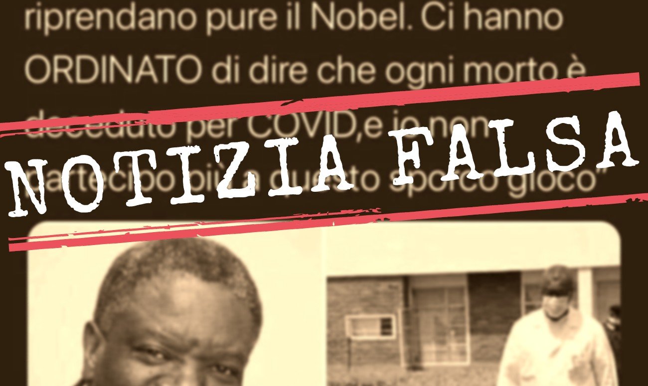 Il 22 giugno su Facebook è stata pubblicata un’immagine in cui compare una foto del dottor Dénis Mukwege e questo testo: «Dr Mukwege, nobel per la pace si RIFIUTA di mentire oltre la misure sul #COVID19: “Non posso sporcare ulteriormente mia coscienza per denaro, si riprendano pure il Nobel. Ci hanno ORDINATO di dire che ogni morto è deceduto per COVID, e io non partecipo più a questo sporco gioco».