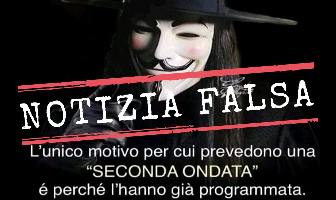 Il post è accompagnato da un’immagine tratta dal film “V per Vendetta” e da un ulteriore testo, che recita: «L’unico motivo per cui prevedono una “seconda ondata” è perché l’hanno già programmata… e i primi a morire saranno proprio coloro che si vaccineranno!».
