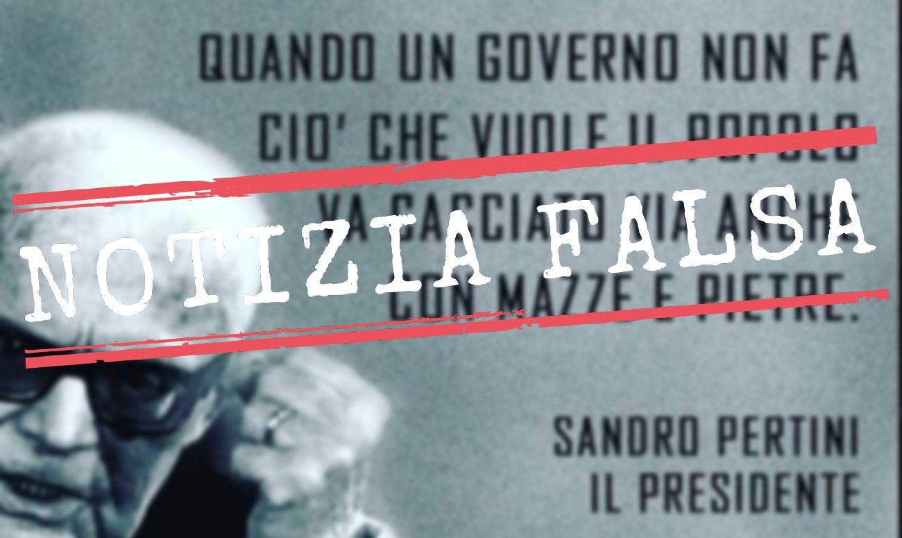 No, Sandro Pertini non ha detto che «quando il governo non fa ciò che vuole il popolo va cacciato via anche con mazze e pietre»