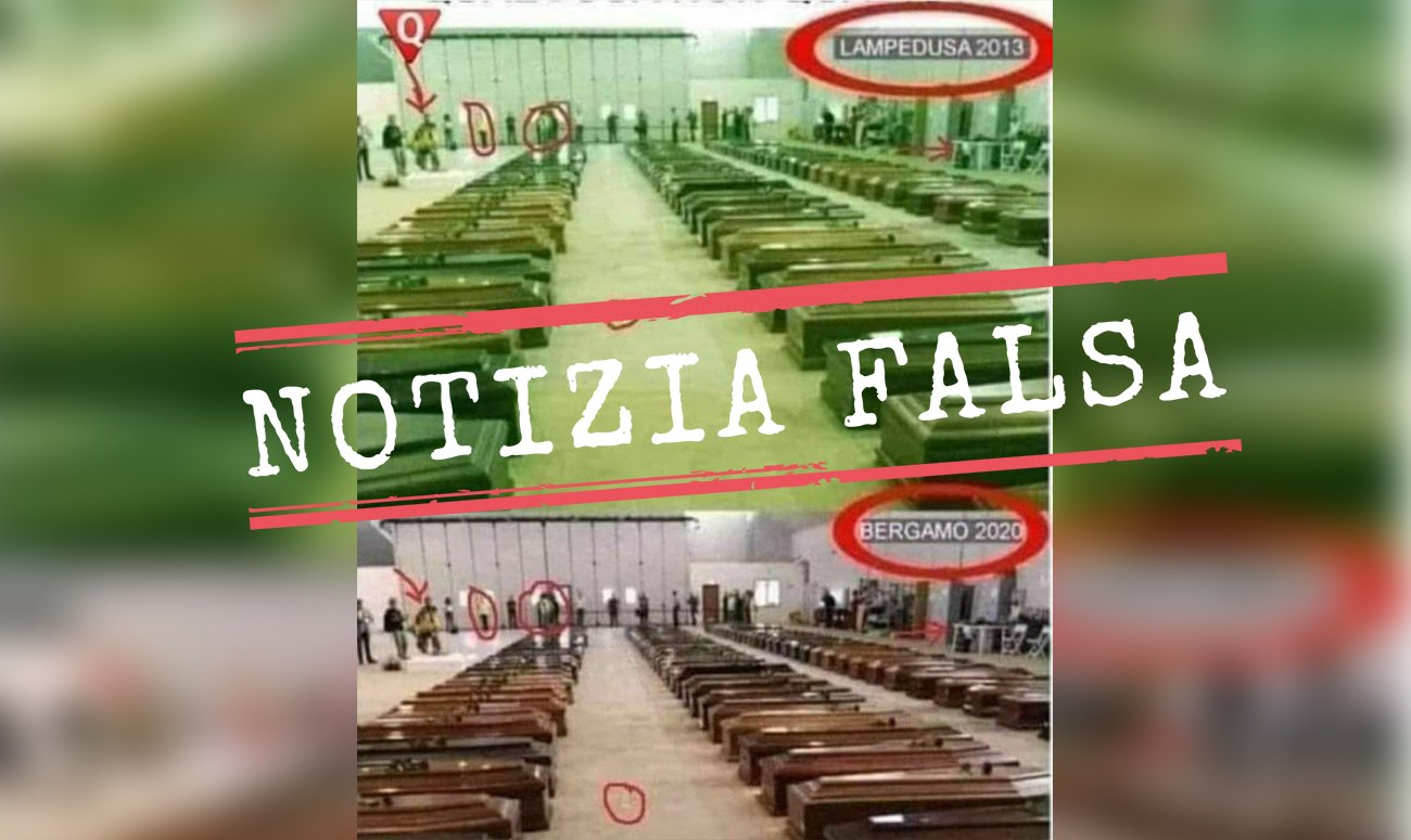 Come verificato dai colleghi di Pagella Politica lo scorso 19 marzo, un’immagine che ritraeva oltre 100 bare di migranti morti durante la traversata del Mediterraneo, scattata il 3 ottobre 2013 a Lampedusa, era stata effettivamente pubblicata su Facebook e spacciata per una fotografia scattata a Bergamo durante l’epidemia di Covid-19. Non esiste alcun riscontro, però, circa il fatto che la stessa immagine sia stata mandata in onda dai telegiornali durante la quarantena.