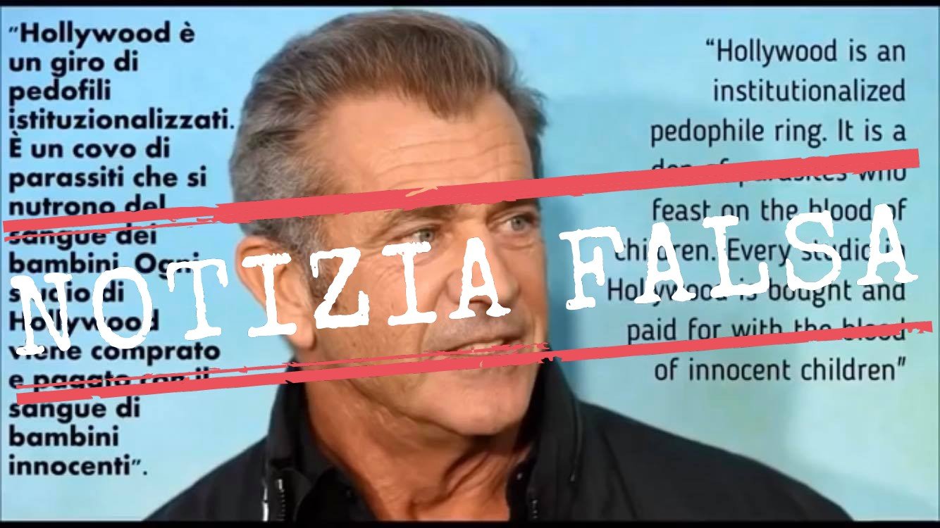 Il 14 maggio su Facebook è stata pubblicata un’immagine composta da una foto dell’attore statunitense Mel Gibson e da una sua presunta dichiarazione: «Hollywood è un giro di pedofili istituzionalizzati. È un covo di parassiti che si nutrono del sangue dei bambini. Ogni studio di Hollywood viene comprato e pagato con il sangue di bambini innocenti».