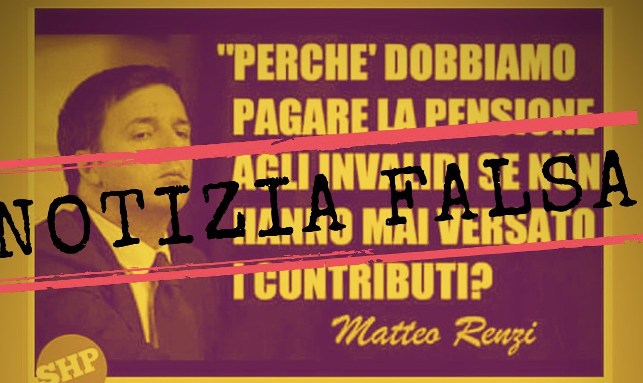 Il 5 settembre 2020 su Facebook è stata pubblicata un’immagine che mostra una foto del leader di Italia Viva Matteo Renzi e da una sua presunta dichiarazione: «Perché dobbiamo pagare la pensione agli invalidi se non hanno mai versato i contributi?».