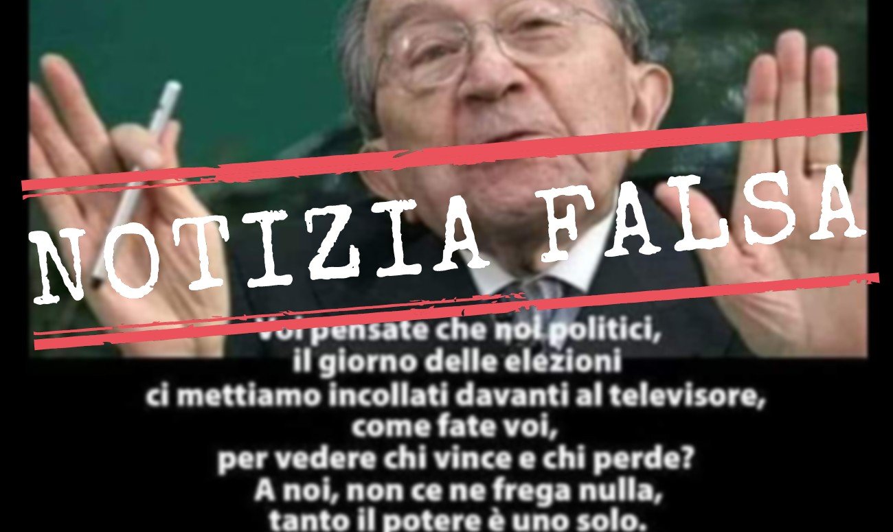 Il 21 settembre 2020 su Facebook è stata pubblicata una foto di Giulio Andreotti, ex presidente del Consiglio e senatore a vita scomparso nel 2013, e il testo di una dichiarazione a lui attribuita. Si legge: «Voi pensate che noi politici, il giorno delle elezioni ci mettiamo incollati davanti al televisore, come fate voi, per vedere chi vince e chi perde? A noi, non ce ne frega nulla, tanto il potere è uno solo. A noi interessano solo i dati di quanti non vanno a votare, quante schede bianche e quante annullate. Perché se il non voto arriva al 60%, per noi è finita! Significherebbe che il popolo ha sfiduciato tutto il sistema politico. I giudici non sarebbero più sotto scacco e farebbero immediatamente i processi per davvero. E finiremmo tutti in galera! Ma per fortuna nostra, voi questo non lo sapete e continuate a ripetere le frasette che vi mettiamo in bocca, come: se non vai a votare ti rimetti alla volontà degli altri che ci vanno. E rideva di gusto. La persona che conosco gli rispose: “Scusi, ma chi glielo garantisce che, quando esco di qua, non racconto ciò che lei mi ha appena detto”? E Andreotti: “Lo faccia, lo faccia pure! La prenderanno per scemo”!».