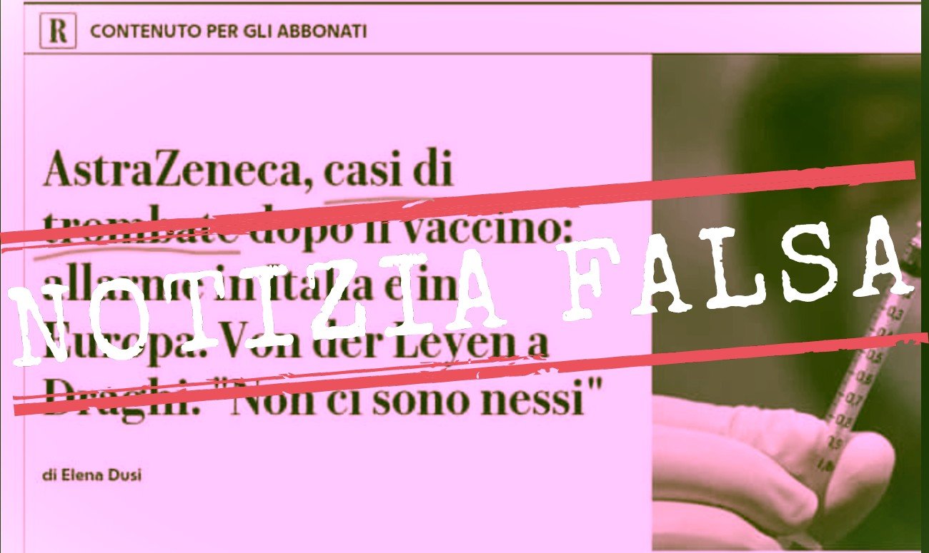 Il 12 marzo 2021 su Facebook è stata pubblicata un’immagine che riporterebbe un titolo pubblicato dal quotidiano la Repubblica. Si legge: «AstraZeneca, casi di trombate dopo il vaccino: allarma in Italia e in Europa. Von der Leyen a Draghi: “Non ci sono nessi”». Il riferimento è alle notizie del 10 e 11 marzo 2021 riguardo ad una trentina di casi di presunti eventi avversi tromboembolici dopo la somministrazione in Europa del vaccino prodotto da Astrazeneca. L’immagine oggetto della nostra verifica è accompagnata da questo commento, scritto da chi ha pubblicato il post su Facebook: «Ehm. Repubblica dovresti controllare i titoli prima di pubblicare».