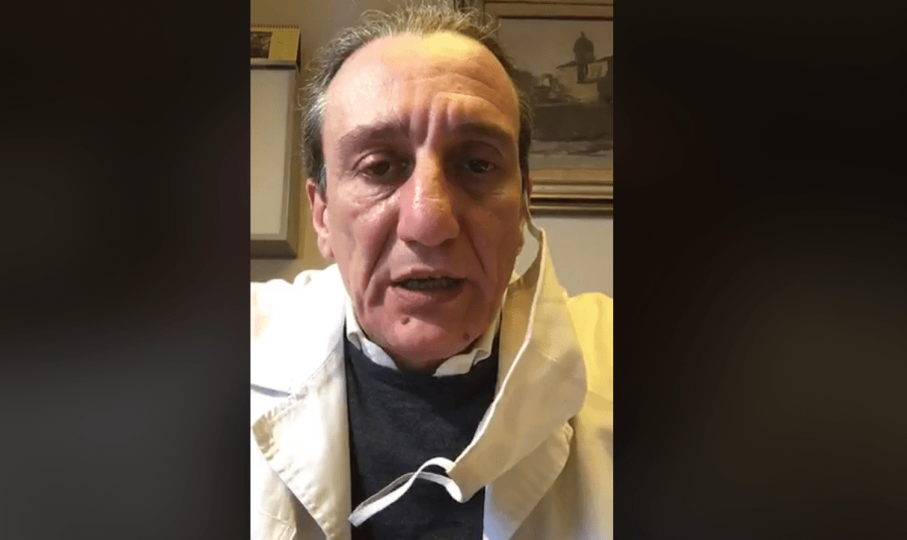 L’inquadratura del video, ambientato in una stanza che sembrerebbe essere uno studio, è il primo piano di Massimo Orlandini, che indossa un camice aperto e ha una mascherina appesa a un orecchio.