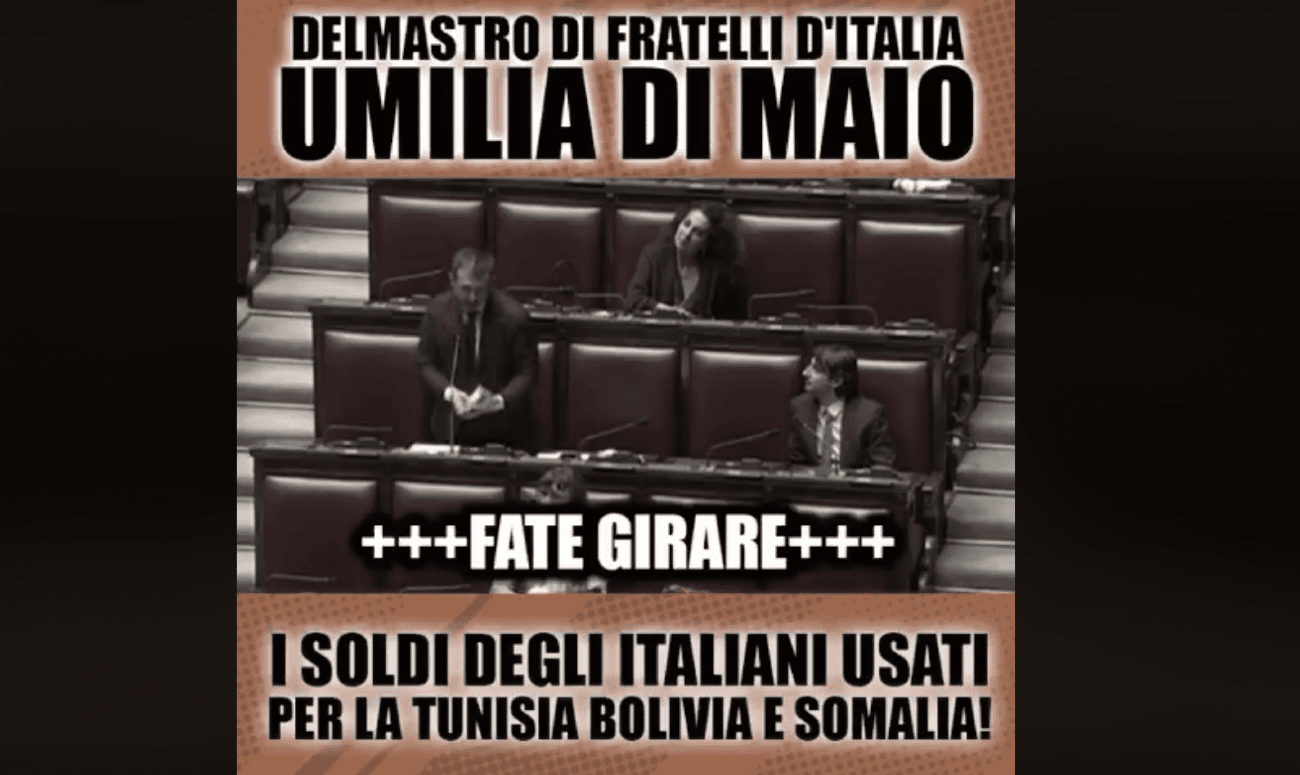 Delmastro ha accusato Di Maio di aver «improvvidamente, sciaguratamente, inopportunamente», dato 50 milioni di euro alla Tunisia ed erogato 21 milioni di euro alla Bolivia, nonostante non vi fosse alcuna scadenza e i memorandum stretti con i due Paesi contenessero una clausola per recedere dagli accordi per «cause di forza maggiore».