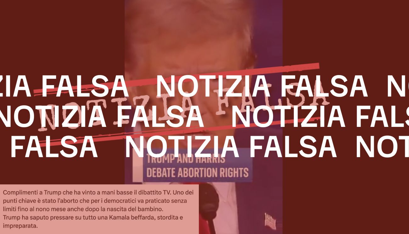 L’11 settembre 2024 l’ex senatore della Lega Simone Pillon ha pubblicato su X un post in cui si legge che «l’aborto che per i democratici va praticato senza limiti fino al nono mese anche dopo la nascita del bambino». Il post è accompagnato da un video in cui si sente Donald Trump dire, in inglese, che «i democratici sono radicali su questa cosa» e che secondo loro «l’aborto al nono mese va assolutamente bene».