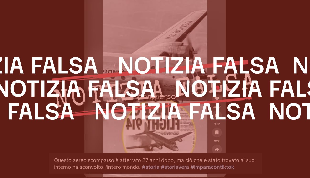 L’11 giugno 2024 la redazione di Facta ha ricevuto una segnalazione via WhatsApp che chiedeva di verificare un video pubblicato il giorno prima su TikTok. Nel filmato viene raccontata la storia di un aereo che nel 1955 sarebbe decollato da New York con 57 passeggeri a bordo in direzione Miami per poi «scomparire dallo schermo dei radar».