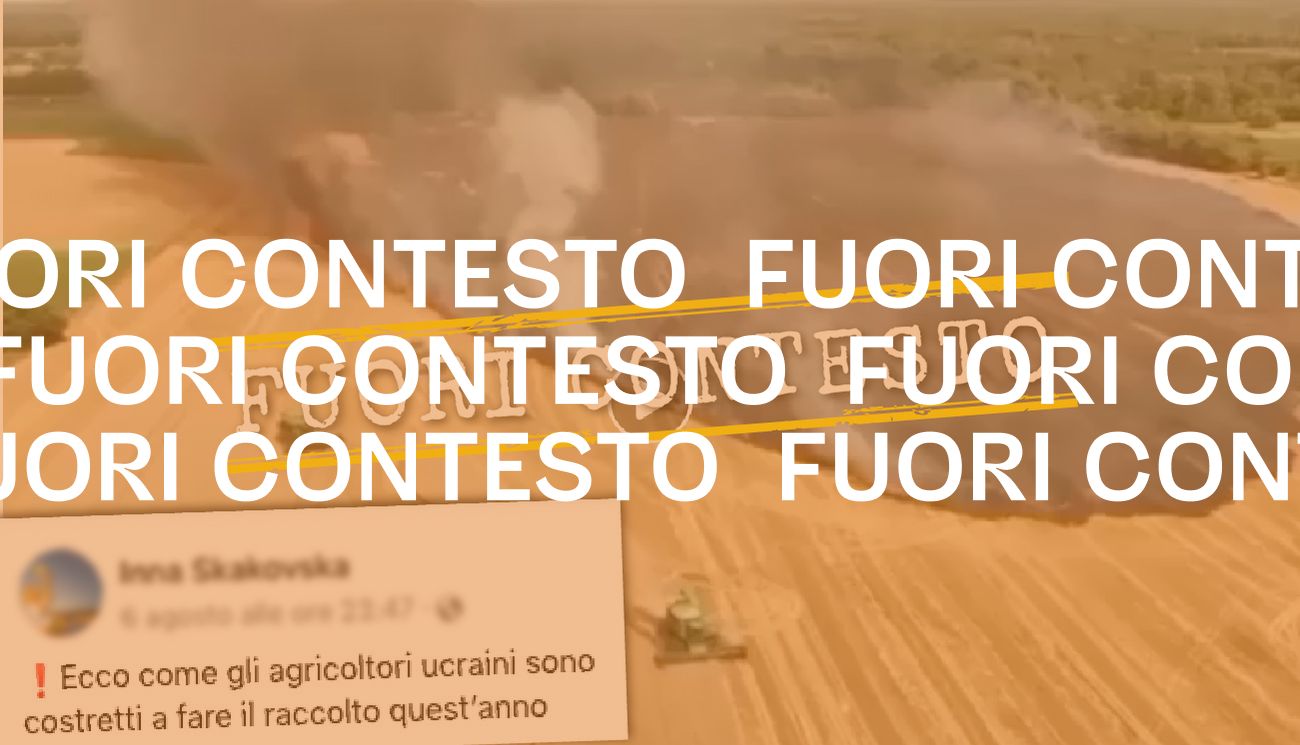Il 6 agosto 2022 su Facebook è stato pubblicato un video di tre mietitrebbiatrici, riprese dall’alto, che lavorano in un campo di grano in parte coperto dalle fiamme. Le immagini sono accompagnate da questo commento, scritto da chi ha pubblicato il post su Facebook: «Ecco come gli agricoltori ucraini sono costretti a fare il raccolto quest’anno».
