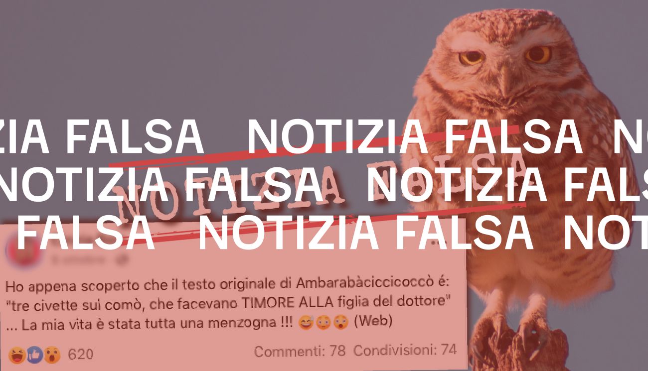 L’8 ottobre 2022 su Facebook è stato pubblicato un post in cui si legge: «Ho appena scoperto che il testo originale di Ambarabàciccicoccò é: “tre civette sul comò, che facevano TIMORE ALLA figlia del dottore” … La mia vita è stata tutta una menzogna !!!».