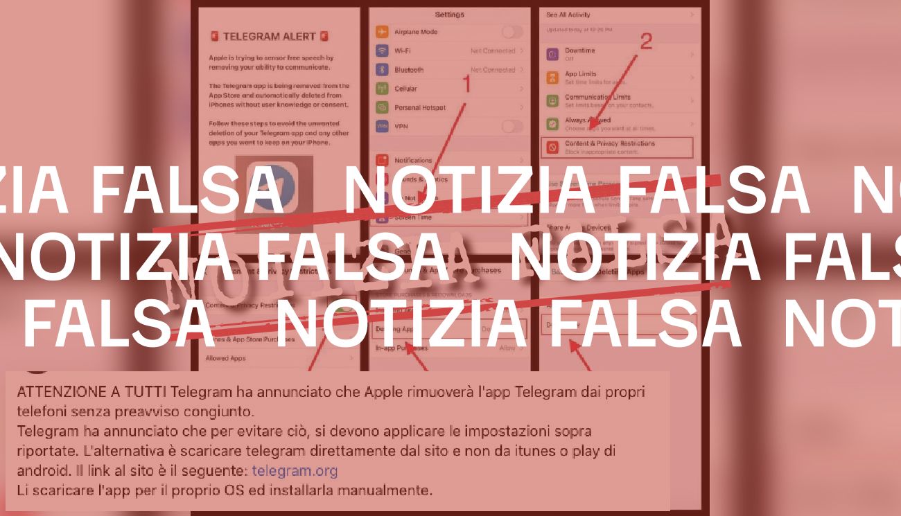 Il 25 agosto 2024 su Facebook è stato pubblicato un post in cui si legge che l’app di messaggistica Telegram avrebbe annunciato che «Apple rimuoverà l’app Telegram dai propri telefoni senza preavviso congiunto». Il post continua con delle presunte indicazioni fornite da Telegram per evitare tale rimozione.