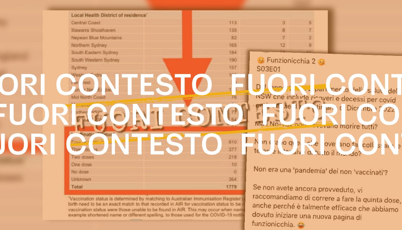 Il 17 gennaio 2023 su Facebook è stata pubblicata una tabella che mostra il numero delle persone ammesse in ospedale, in terapia intensiva e decedute per la Covid-19 nelle ultime due settimane di dicembre 2022 nello Stato australiano del Nuovo Galles del Sud (Nsw). Secondo la tabella, questi pazienti sarebbero stati per la quasi totalità vaccinati contro il nuovo coronavirus.