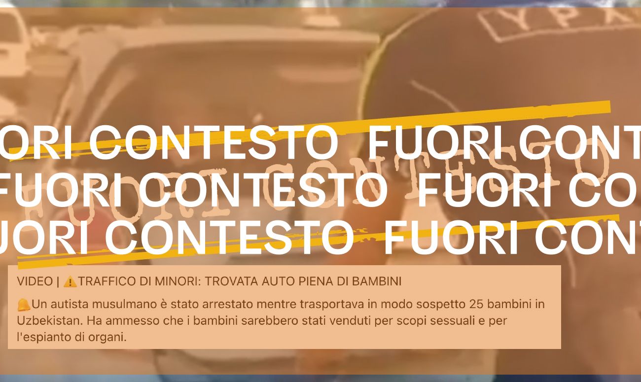 Il filmato è accompagnato da un commento, scritto dall’autore del post, che afferma che la scena mostrerebbe l’arresto di un «autista musulmano» mentre trasportava «in modo sospetto 25 bambini in Uzbekistan». L’uomo, si legge ancora, avrebbe ammesso «che i bambini sarebbero stati venduti per scopi sessuali e per l’espianto di organi». Lo stesso contenuto è stato pubblicato su TikTok.