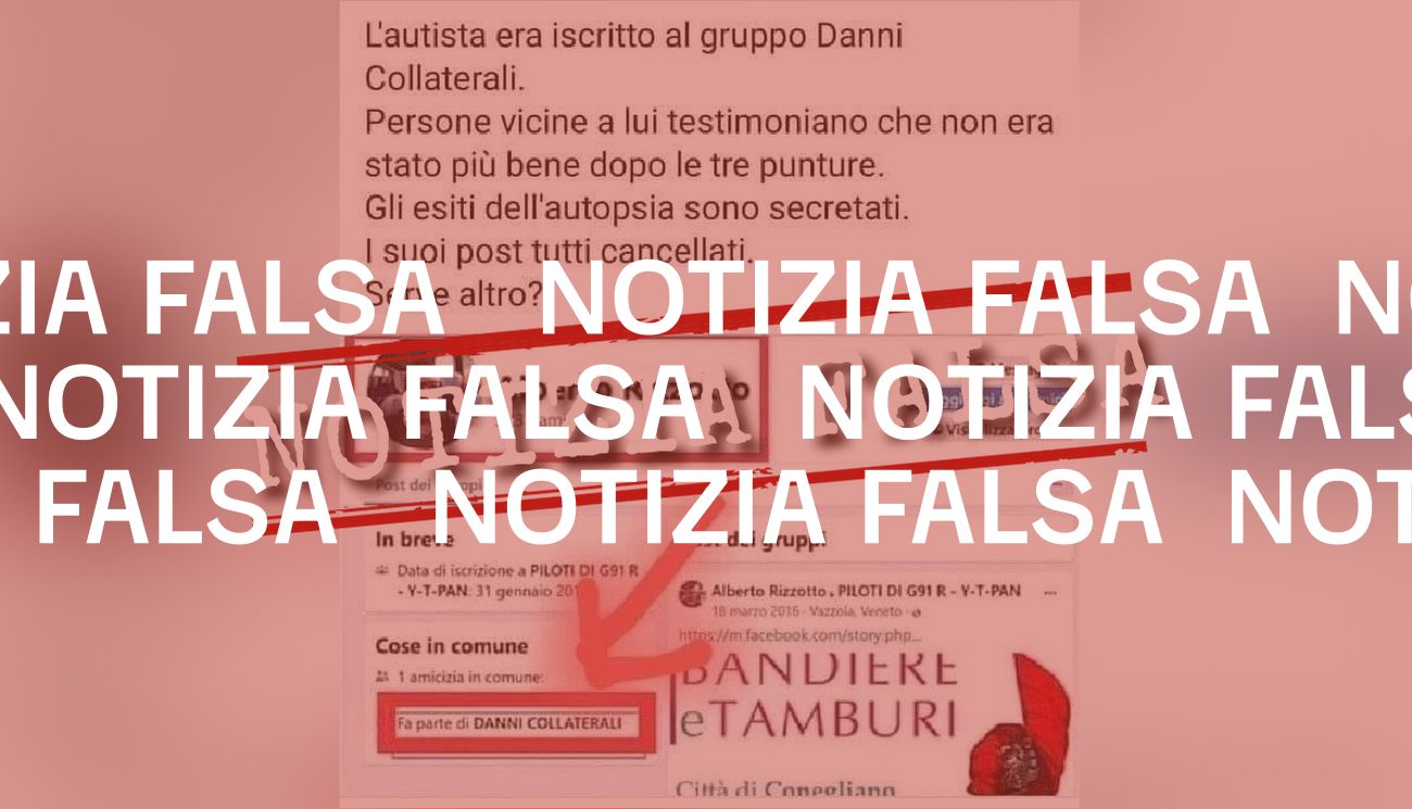 Inoltre, sul gruppo Facebook non sembrano esserci post di testimonianza diretta condivisi in passato dall’account in questione, e nessuna testata giornalistica italiana ha riportato presunte dichiarazioni di parenti o familiari della vittima in merito a eventuali problemi riscontrati dall’autista dopo la somministrazione del vaccino. Questa notizia è stata diffusa dal sito web Giornale d’Italia, che però ammette di non aver verificato la veridicità delle parole. Su Facta.news ci siamo occupati in diversi casi di contenuti disinformativi pubblicati da questo quotidiano in tema di vaccini contro la Covid-19.