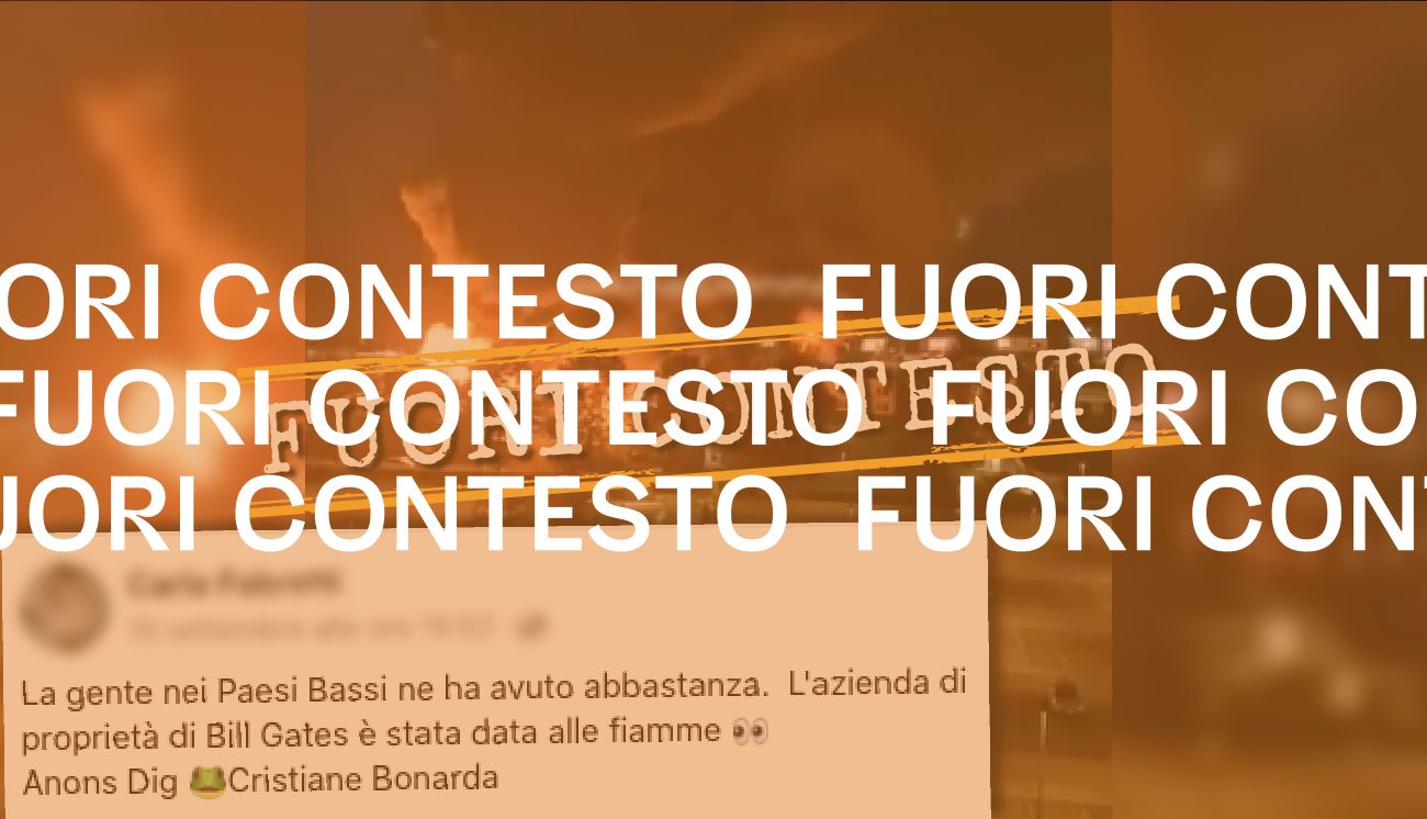 Il 10 settembre 2023 è stato pubblicato su Facebook il video di un grande incendio nell’edificio di una città. Le immagini sono accompagnate da un commento, scritto dall’autore del post, che recita: «La gente nei Paesi Bassi ne ha avuto abbastanza. L’azienda di proprietà di Bill Gates è stata data alle fiamme».