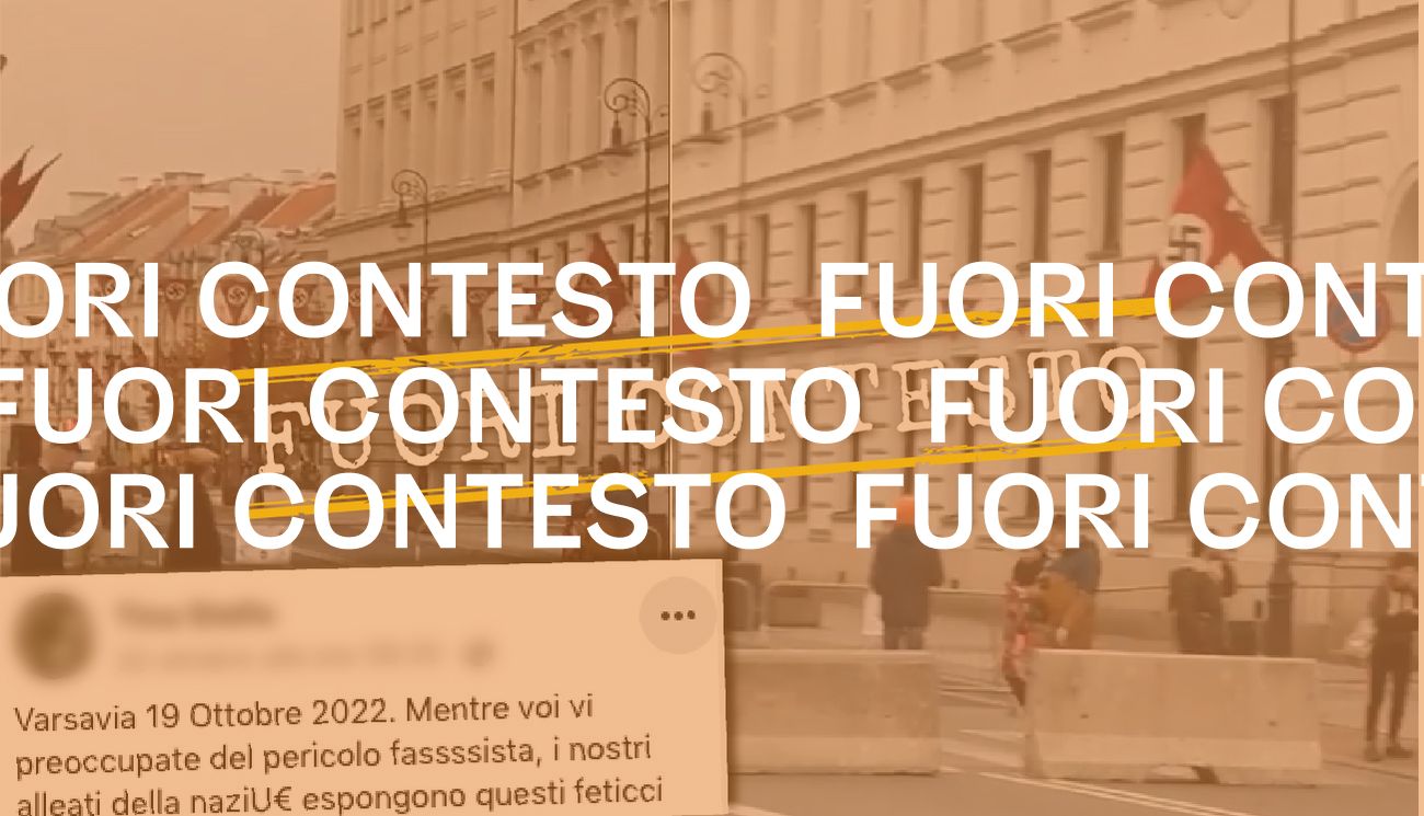 Il 20 ottobre 2022 su Facebook è stato pubblicato un video che mostra la strada di una città con bandiere e coccarde con simboli nazisti. Il filmato è accompagnato da questo commento, scritto da chi ha pubblicato il contenuto su Facebook: «Varsavia 19 Ottobre 2022. Mentre voi vi preoccupate del pericolo fassssista, i nostri alleati della naziU€ espongono questi feticci».
