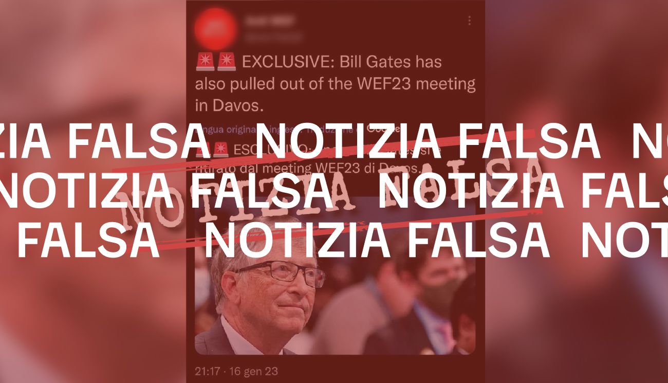 Il 17 gennaio 2023 su Facebook è stato pubblicato un post in cui si afferma che l’imprenditore e cofondatore di Microsoft, Bill Gates, si sarebbe «ritirato» dal meeting annuale del World economic forum del 2023 a Davos (Svizzera), una riunione molto celebre perché riunisce alcuni degli imprenditori e dei politici più famosi del mondo per discutere temi di attualità.