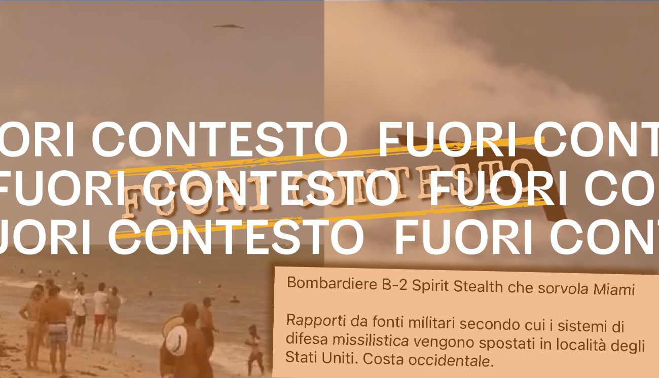 Il 21 giugno 2023 è stato pubblicato su Facebook il video di un aereo militare che sorvola una spiaggia. Il filmato è accompagnato da un commento, scritto dall’autore del post, che recita: «Bombardiere B-2 Spirit Stealth che sorvola Miami. Rapporti da fonti militari secondo cui i sistemi di difesa missilistica vengono spostati in località degli Stati Uniti. Costa occidentale».