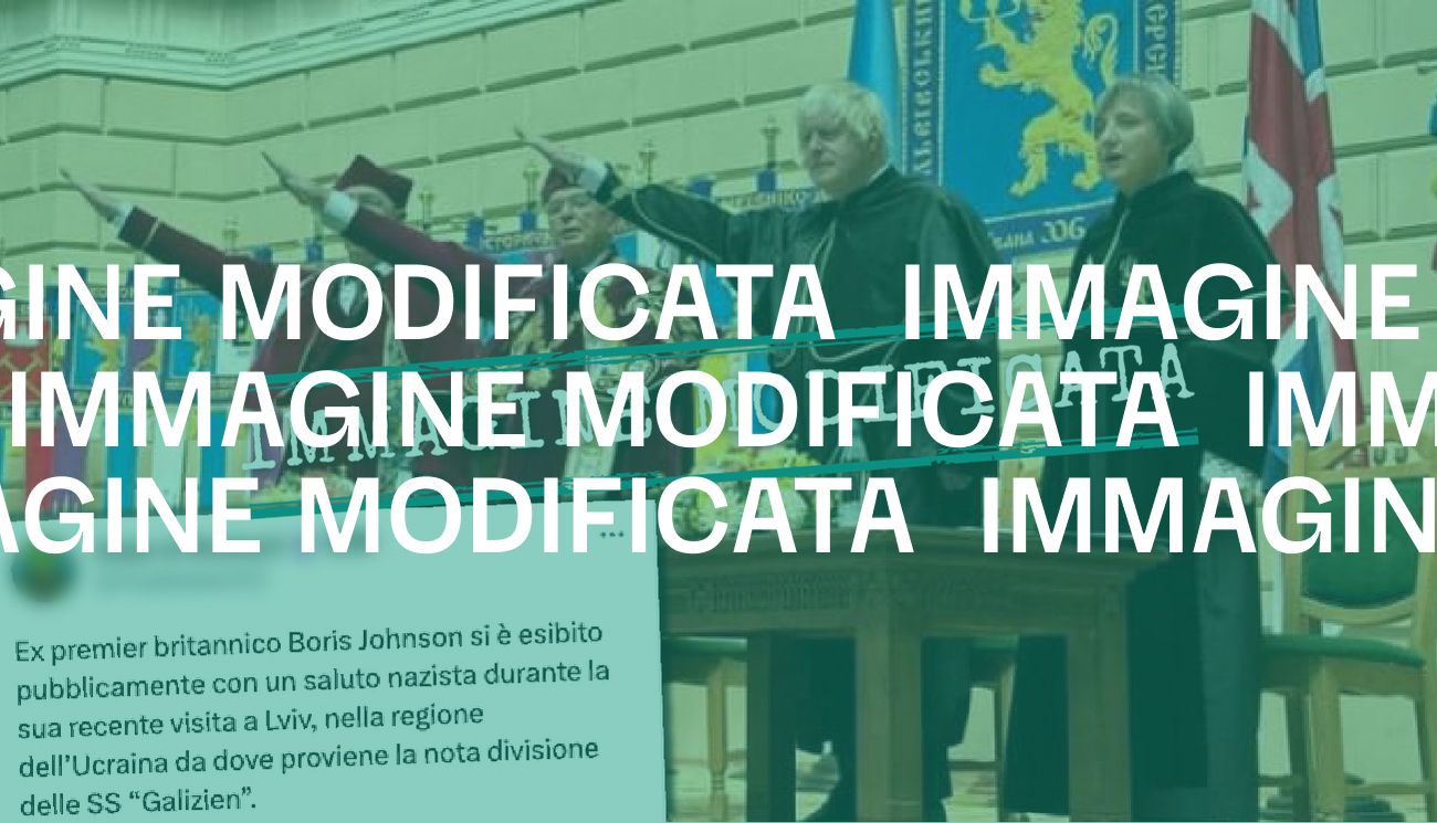 L’11 settembre 2023 la redazione di Facta.news ha ricevuto una segnalazione via WhatsApp che chiedeva di verificare una foto, pubblicata su X lo stesso giorno, che mostra l’ex primo ministro britannico Boris Johnson con il braccio destro teso nel corso di quella che sembra una cerimonia pubblica. Oltre all’ex primo ministro, anche altre due persone vestite in abito da cerimonia sembrano fare il saluto nazista. Nell’immagine compare anche un testo in cui si afferma che la scena mostrerebbe Johnson che si esibisce pubblicamente con il saluto nazista «durante la sua recente visita a Lviv», in Ucraina.