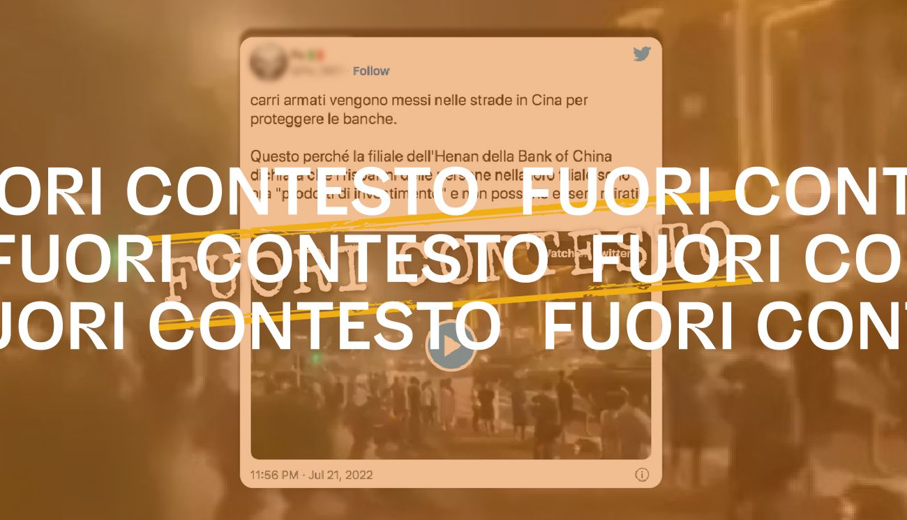 Il riferimento è alle proteste che hanno avuto luogo all’inizio del mese di luglio 2022 nella provincia cinese di Henan, in seguito al congelamento di milioni di dollari di depositi da parte di quattro grandi banche, e che sono state violentemente represse.