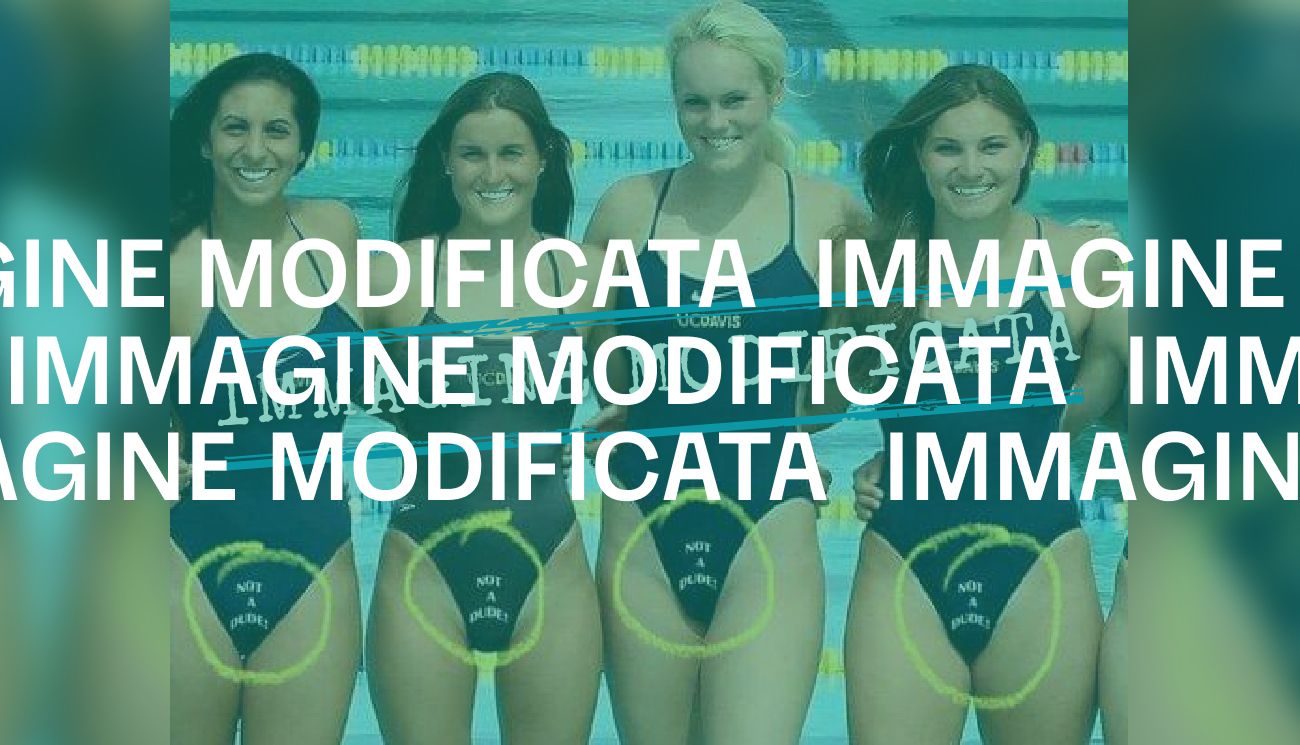 Come si può vedere dalla scritta «UC Davis» presente sul costume, le atlete presenti nello scatto indossano la divisa dell’Università della California (UC Davis, per l’appunto). Confrontando i volti delle atlete nell’immagine con quelli delle nuotatrici presenti nell’archivio storico della squadra dell’Università, si ritrovano alcune sportive che hanno fatto parte del team nel 2010 e nel 2011. Per avere ulteriori informazioni in merito alla data e al luogo dello scatto, la redazione di Facta ha contattato l’Università e, in caso di risposta, aggiornerà l’articolo. Sul sito dell’Università, comunque, non compaiono foto del costume da bagno con la scritta «not a dude».
