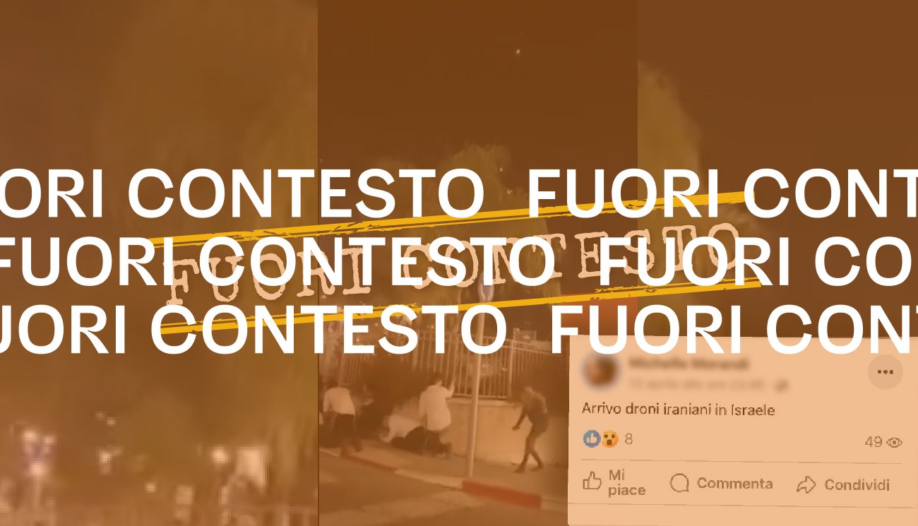 Il 13 aprile 2024 è stato pubblicato su Facebook un video che ritrae alcune persone per strada, di notte, nascondersi mentre si sentono delle esplosioni in lontananza e si vedono luci in cielo. Il filmato è accompagnato da un testo, scritto dall’autore del post, che recita: «Arrivo droni iraniani in Israele».