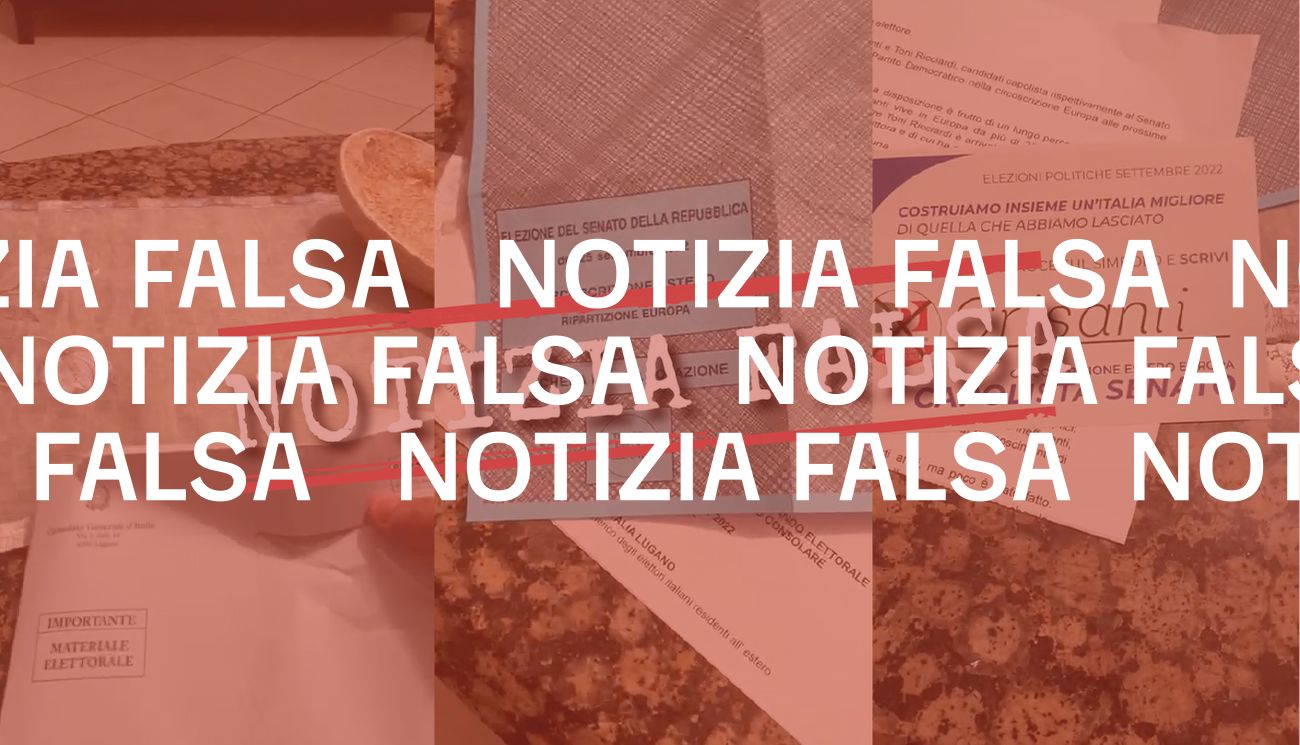 Il 12 settembre 2022 la redazione di Facta ha ricevuto una segnalazione che chiedeva di verificare un video pubblicato su Facebook l’8 settembre 2022 in cui si vede un uomo esaminare il contenuto della busta ricevuta dal Consolato Generale d’Italia a Lugano, in Svizzera, e destinata alla sua compagna, italiana e residente all’estero, per votare alle prossime elezioni politiche del 25 settembre.