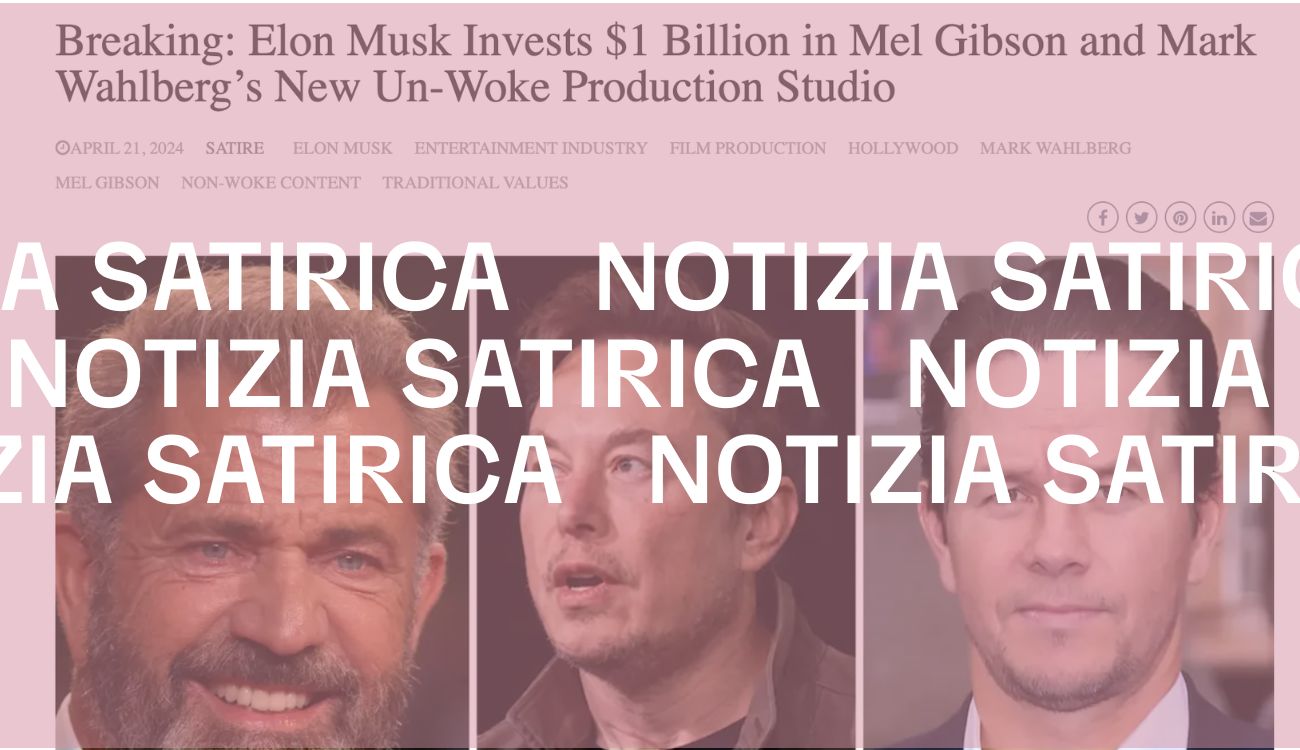Precisiamo poi che non esiste una studio cinematografico anti-woke degli attori statunitensi Mel Gibson e Mark Wahlberg. Anche in questo caso si tratta di un contenuto satirico diffuso da Esspots il 31 marzo 2024, di cui ci eravamo occupati su Facta perché ritenuto reale da diversi utenti.