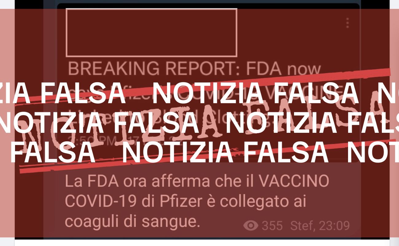 Il 18 dicembre 2022 su Facebook è stato pubblicato un post in cui si legge che la Food and drug administration (Fda) – l’ente governativo statunitense che si occupa della regolamentazione dei prodotti alimentari e farmaceutici – avrebbe affermato che il vaccino di Pfizer contro la Covid-19 è collegato alla formazione dei coaguli di sangue.
