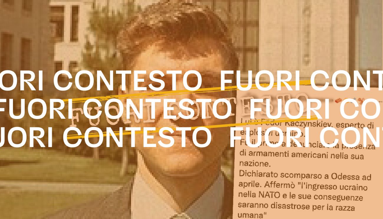 Il 12 settembre 2022 è stato pubblicato un tweet in cui si vede la foto di un uomo accompagnata da un commento che recita: «Lui è Fëdor Kaczynskiev, esperto di esplosivi ucraino. Fu il primo a denunciare la presenza di armamenti americani nella sua nazione. Dichiarato scomparso a Odessa ad aprile. Affermò “l’ingresso ucraino nella NATO e le sue conseguenze saranno disastrose per la razza umana”».