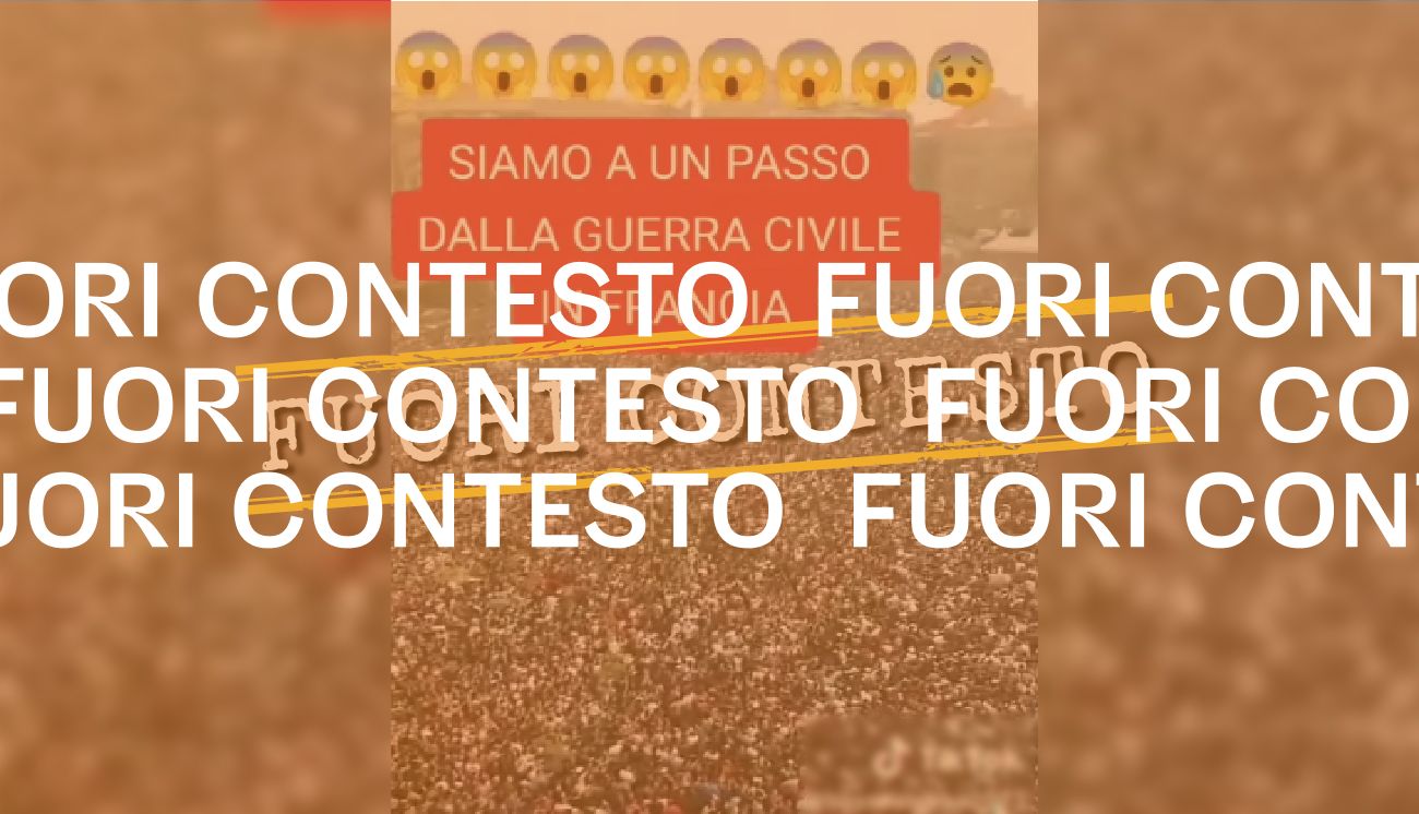 Sul filmato compare la scritta “Siamo a un passo dalla guerra civile in Francia”. Il riferimento è alle proteste in Francia, con scontri e violenze, nate dopo l’uccisione di un ragazzo di 17 anni che era alla guida di un’auto, avvenuta il 27 giugno a Nanterre per mano di un agente di polizia durante un controllo. Il 29 giugno lo stesso video, con la stessa scritta in sovraimpressione, era stato pubblicato su TikTok.