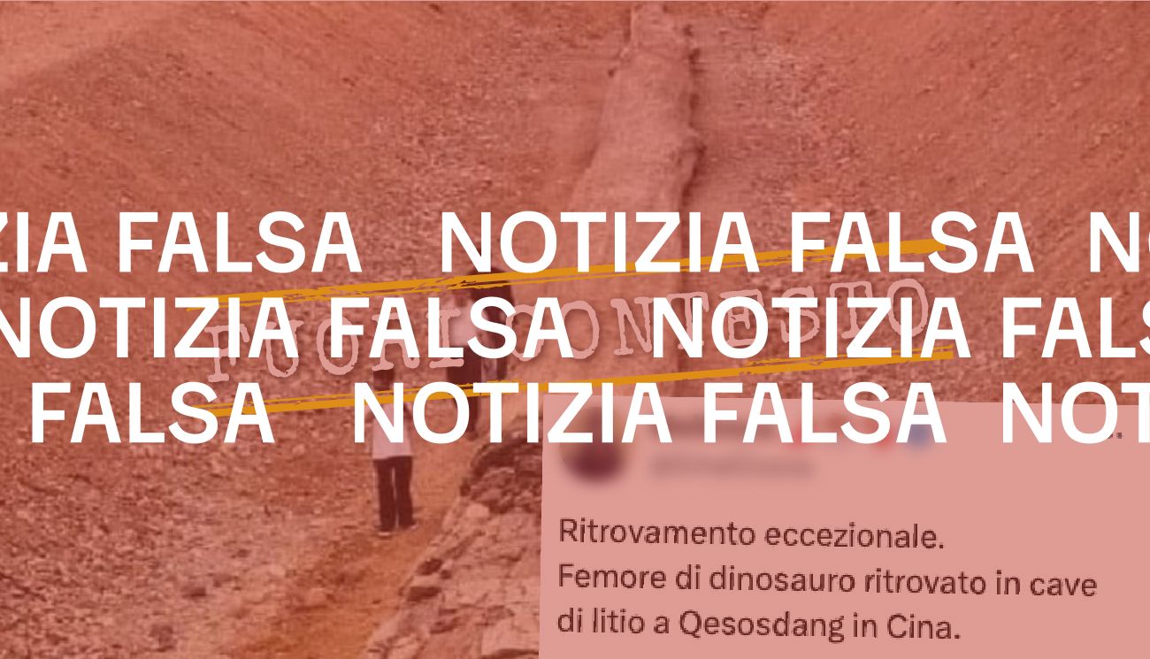 Il 3 luglio 2024 è stata pubblicata su X una foto che mostra quattro persone che camminano di fianco a quello che sembra un grande tronco di un albero steso a terra su un terreno ghiaioso. Secondo chi l’ha condivisa si tratterebbe del «ritrovamento eccezionale» di un «femore di dinosauro ritrovato in cave di litio a Qesosdang in Cina».
