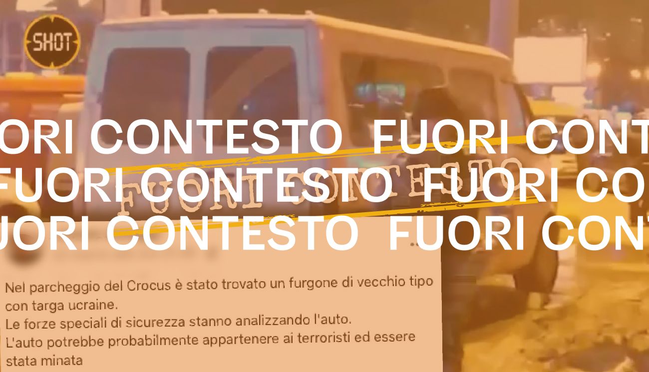 Il 22 marzo 2024 è stato pubblicato su Facebook un video che mostra, in un parcheggio, un furgone bianco controllato da un militare con un cane al guinzaglio. Il filmato è accompagnato da un commento, scritto dall’autore del post, che recita: «Nel parcheggio del Crocus è stato trovato un furgone di vecchio tipo con targa ucraina. Le forze speciali di sicurezza stanno analizzando l’auto. L’auto potrebbe probabilmente appartenere ai terroristi ed essere stata minata».