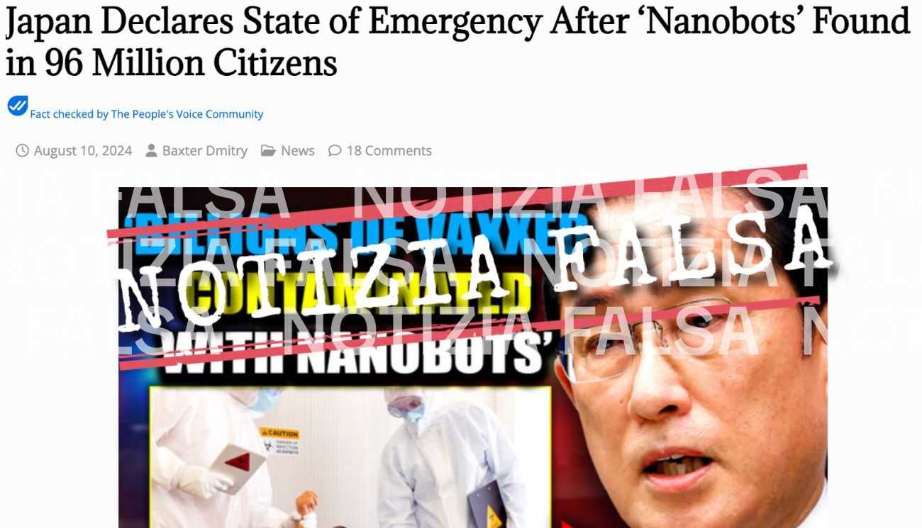 - Il Giappone non ha dichiarato lo stato di emergenza per aver trovato dei nanobot nelle persone vaccinateIl Giappone non ha dichiarato lo stato di emergenza per aver trovato dei nanobot nelle persone vaccinate