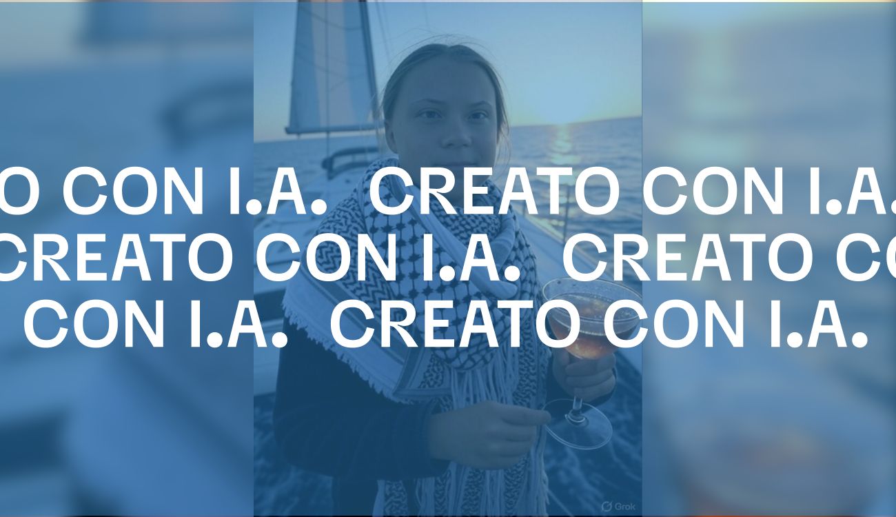 Guardando con attenzione l’immagine si può notare che in basso a destra è presente il watermark di Grok, il chatbot di X basato sull’intelligenza artificiale con cui è possibile generare immagini tendenzialmente molto realistiche. Guardando la mano sinistra di Thunberg che tiene il bicchiere si nota l’assenza di un dito. I programmi di IA fanno ancora fatica infatti a realizzare perfettamente dettagli come le mani.