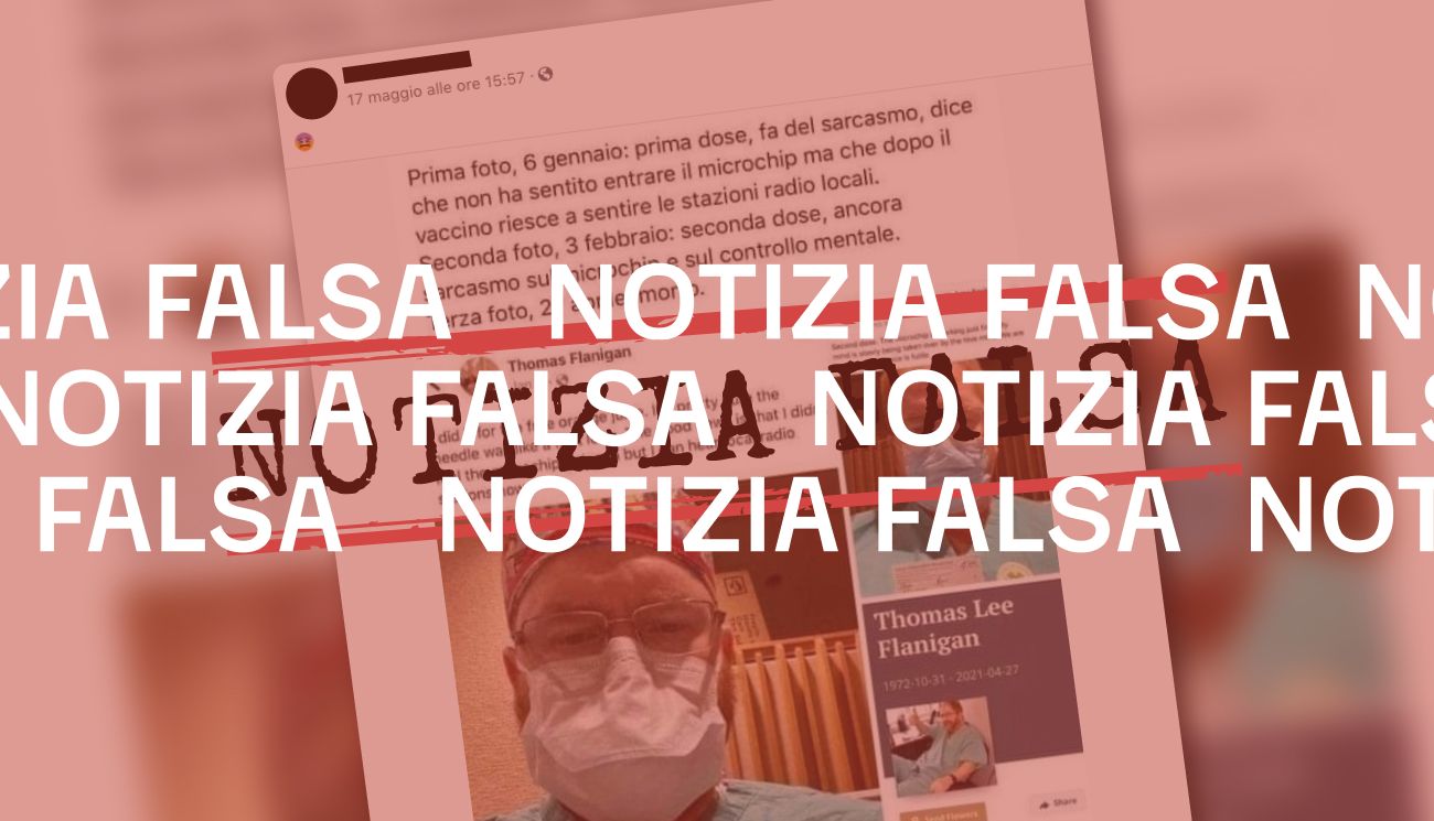Il 17 maggio 2021 su Facebook è stata pubblicata un’immagine in cui si sostiene che un utente Facebook di nome Thomas Flanigan lo scorso 6 gennaio avrebbe pubblicato un post in cui annunciava di aver ricevuto la prima dose di vaccino anti Covid-19 e che nel farlo aveva ironizzato sulle teorie cospirazioniste antivacciniste. Si legge che Flanigan il 3 febbraio scorso, sempre su Facebook, avrebbe pubblicato un secondo post in cui aveva annunciato di aver ricevuto la seconda dose di vaccino. Il 27 aprile 2021 Thomas Flanigan sarebbe deceduto.