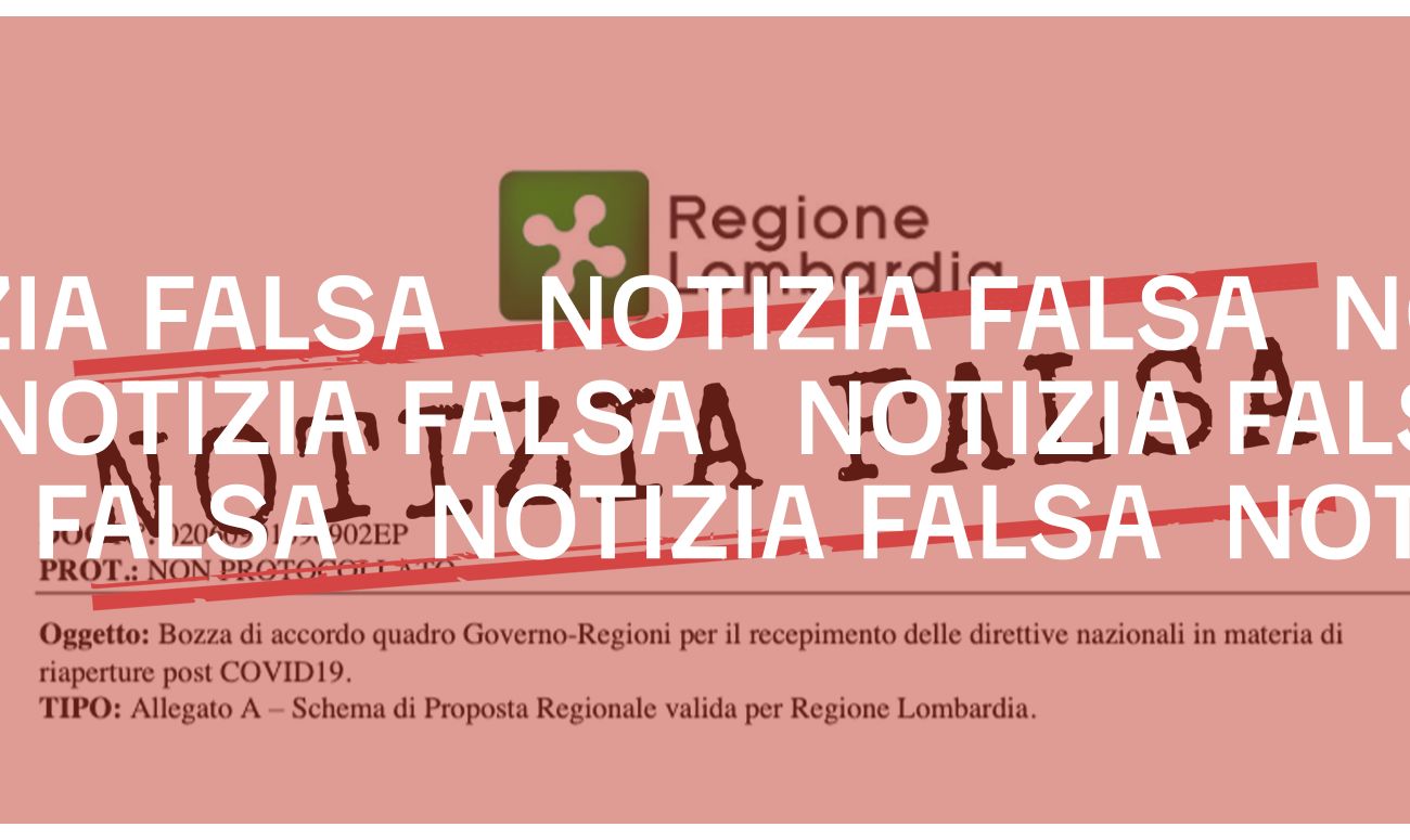 Mercoledì 15 aprile la redazione di Facta ha ricevuto via WhatsApp la richiesta di verificare un documento, recante il logo della Regione Lombardia, che stabilirebbe le tappe della cosiddetta “fase 2”, il cronoprogramma che dovrebbe gradualmente portare l’Italia fuori dal lockdown iniziato lo scorso 9 marzo in conseguenza dell’emergenza Covid-19.